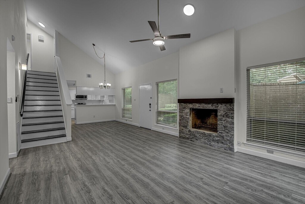 This is a rare opportunity for a beautifully updated 3 Bedroom 2 bathrooms in the quiet community of Westhollow Villa! Swimming pool,tennis courts,and dog parks are steps out of your front door! Fresh paint throughout and water-resistant laminate wood floor all in main area. New stainless steel microwave and stove. The Primary Bedroom and Bath are located on the first Floor. Primary Bath is split with a door in order for one side to be a Guest Bathroom. Master Bedroom is downstairs. Upstairs there are two bedrooms with a bath in between. Vaulted ceilings in the Generous sized Den with Cozy Fireplace,Primary,and Dining Room. Breakfast pass-thru Bar to Dining Room. Oversized garage with plenty of Cabinets and built-in workbench. Huge outside patio with Astro turf for outdoor entertainment. Located less than a mile from Hwy 6 with shopping and Restaurants. Double Pane Windows. Newer HVAC systems. Refrigerators convey. Make your Appointment today before it is too late! MLS# 76292084