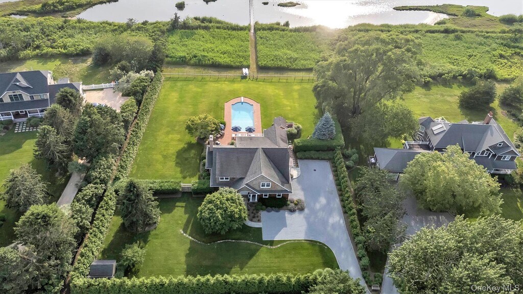 2026 US Open Shinnecock! Traditional Post-Modern Creekfront Home offers privacy,water access and plenty of room to entertain. Open concept living room,dining room & chef's kitchen. Main floor living spaces open to covered blue stone porch & pool area with cabana and outdoor shower. Oversized heated,saltwater pool. Four bedrooms/3.5 bathrooms,dedicated office,bonus den/tv room. Direct creek access for kayaking and paddleboarding. Evening Sunsets Over Creek are incredible! Bed setup (2) kings,(1) queen (1) full. Main floor bedroom suite with private bathroom and king size bed. Primary suite on second floor with private deck overlooking waterfront. Attached 2 car garage. 17 miles to Shinnecock Hills Golf Course,3 miles to Long Island Railroad and 4 miles to Gabreski Airport Based on information submitted to the MLS GRID as of [see last changed date above]. All data is obtained from various sources and may not have been verified by broker or MLS GRID. Supplied Open House Information is subject to change without notice. All information should be independently reviewed and verified for accuracy. Properties may or may not be listed by the office/agent presenting the information. Some IDX listings have been excluded from this website. Prices displayed on all Sold listings are the Last Known Listing Price and may not be the actual selling price.