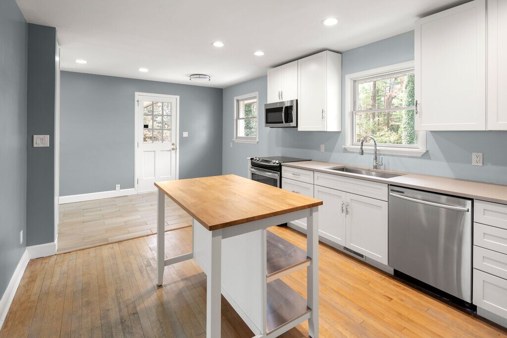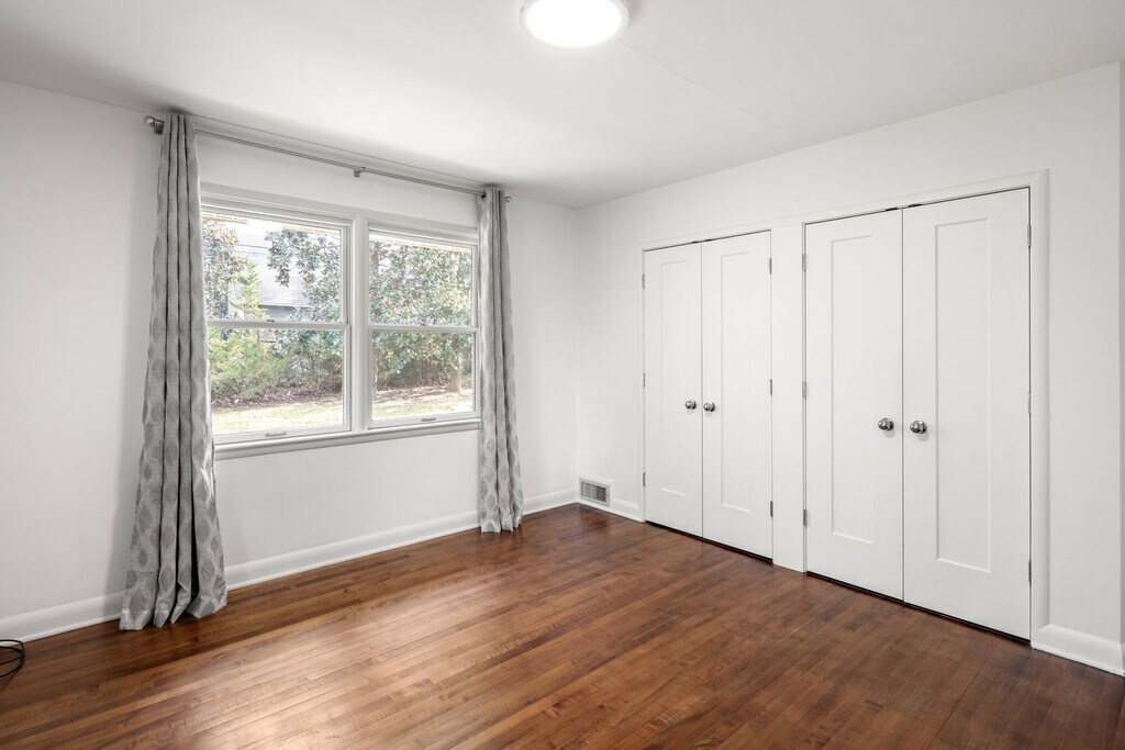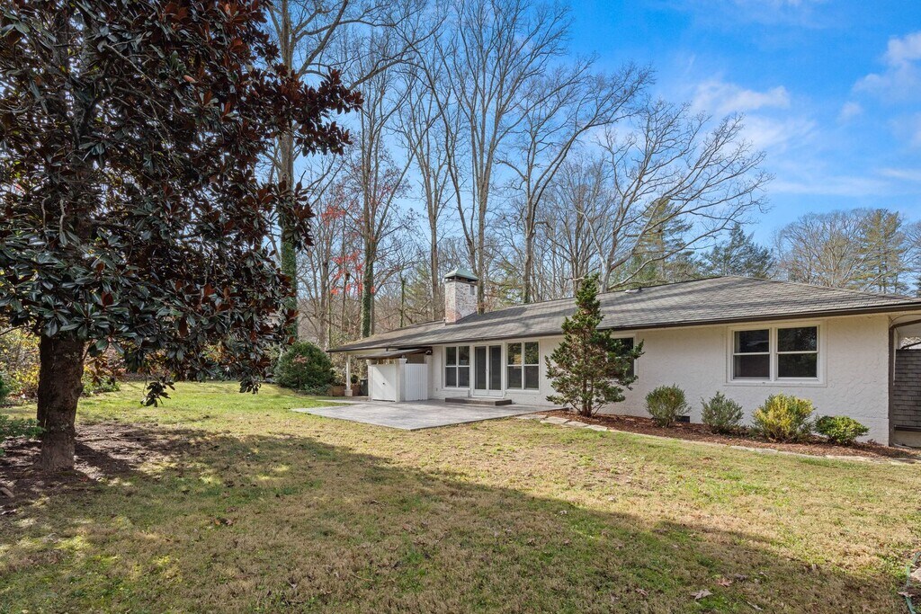 One-level mid-century home with modern updates and a large yard. Hardwood floors are newly refinished and look great - new photos coming soon! The Town of Biltmore Forest is an exclusive Asheville community incorporated in 1923 and planned by the best landscape architects of their day, distinguished by its winding tree-lined streets, substantial home lots, and proximity to Biltmore Forest Country Club. A cozy and elegant living room features coffered ceilings and shelving surrounding the gas fireplace. A wall of windows and French doors overlook the patio and backyard. The adjacent kitchen includes an island, nice cabinetry, solid surface counters, and GE appliances including the electric range, dishwasher, refrigerator, and microwave. The home’s side entry from the carport opens into the mudroom and kitchen. The mudroom has tile floors, cabinetry for storage, and access to the laundry room. The washer and dryer will remain for tenant use but will not be repaired or replaced by the homeowner. Three bedrooms and both bathrooms are off of the home’s tiled main entry foyer and hallway. The primary bedroom includes good closet space and an updated en suite bathroom with a double sink vanity and a walk-in shower with beautiful tile. The hall bathroom is also updated with attractive tile and fixtures. The lot is nearly a half acre, with wonderful, mature landscaping creating an attractive approach from the street and enveloping the private backyard. The level backyard includes the large patio, open space, and a garden area with brick pathways, a fire pit, and raised beds. Central heat (gas furnace) and central air conditioning. Hardwood and tile flooring throughout. Off-street parking in the carport and driveway. Tenant responsible for all utilities and lawn care/ landscape maintenance. One dog under 25 lb negotiable; no cats permitted. No smoking. No cosigners.