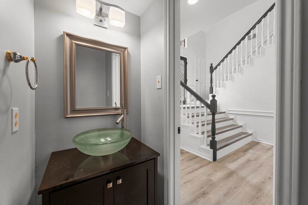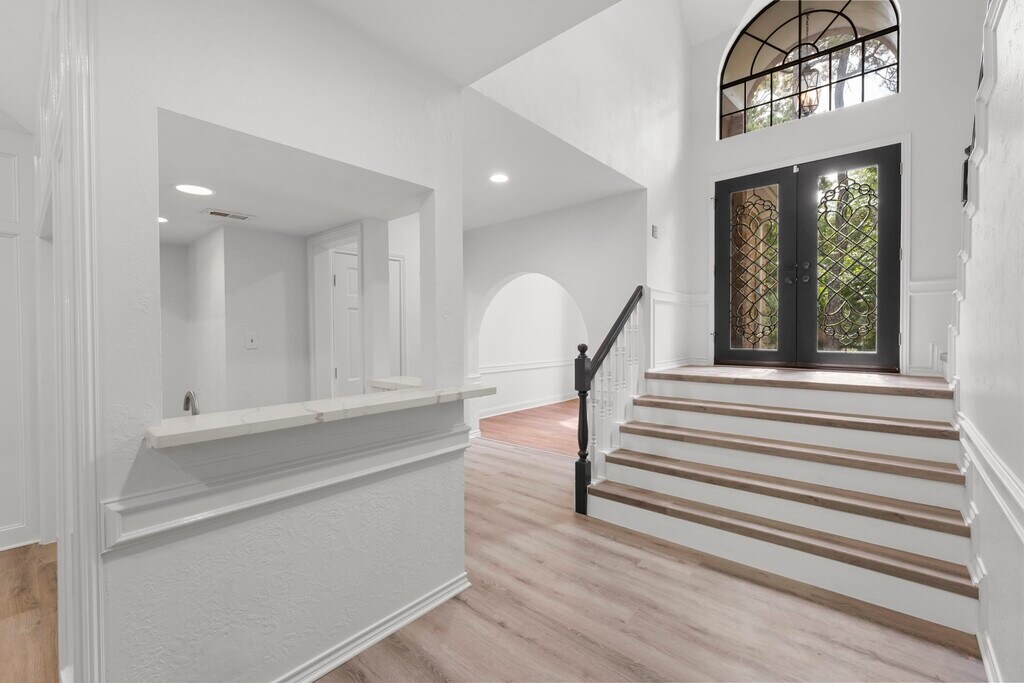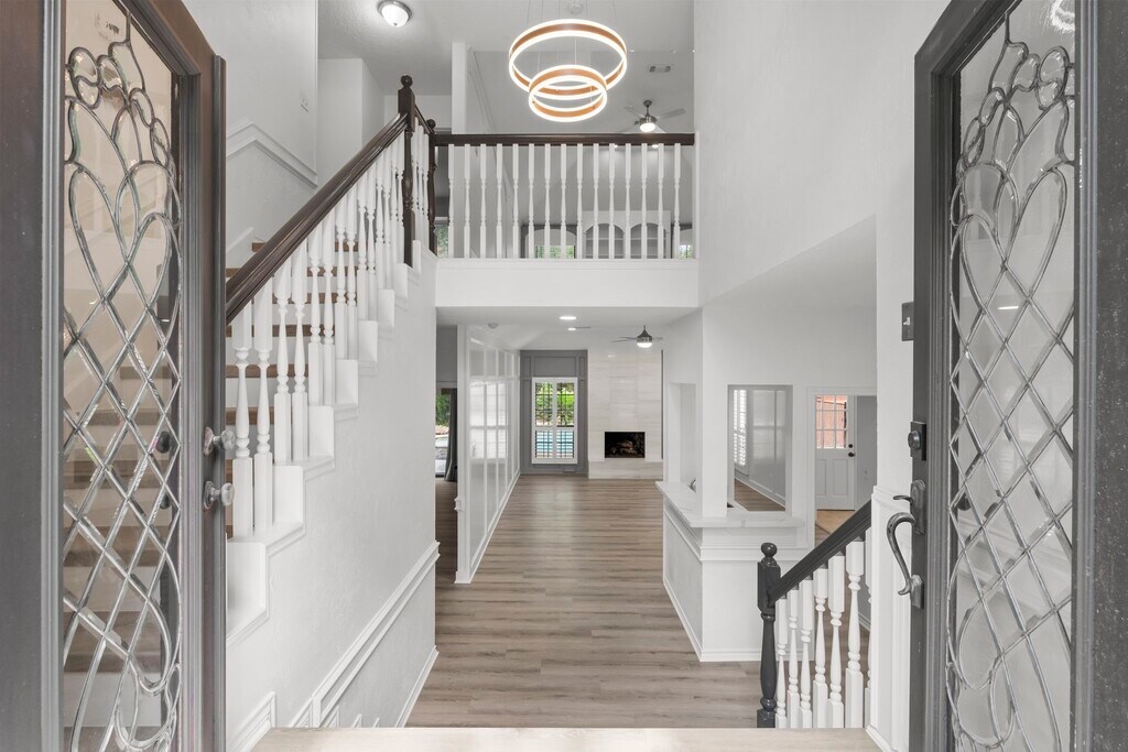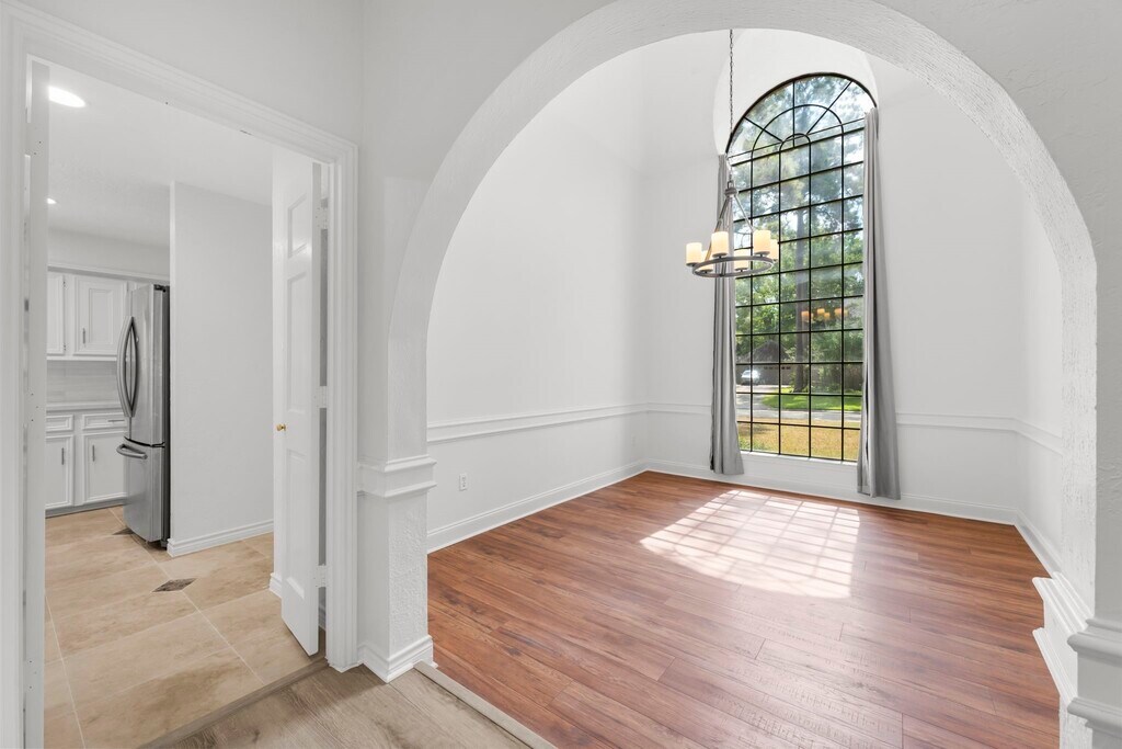An exceptional custom residence adjacent to a green belt,and situated in a sought-after area of The Woodlands. The backyard features a tranquil oasis complete with a pool and hot tub. This property is located on a cul-de-sac in Cochrans Crossing,within walking distance to David Elementary School,the YMCA,shopping centers,and offers easy access to I-45 for commuting. The home boasts extensive mature landscaping both in the front and back yards,a pool and spa,hardwood and tile flooring,quartz countertops,high ceilings,plantation shutters,built-in features,and abundant natural light. The primary bedroom is located on the ground floor,while three additional bedrooms and a spacious game room are situated upstairs. A wet bar is conveniently located next to the living area,along with a large dining room and an island kitchen equipped with stainless steel appliances. Washer,dryer,and refrigerator included in the lease. $3850 including POOL MAINTENANCE and YARD MAINTENANCE! MLS# 24835599