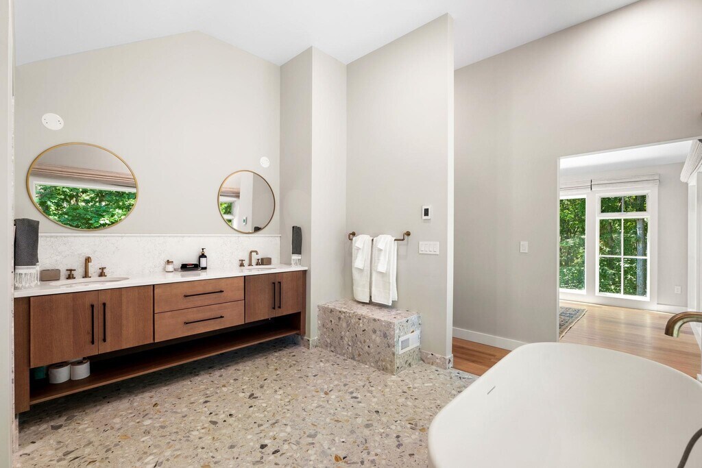 Available August 22-June19 2027. This newly renovated home comes fully furnished with thoughtful and stylish decor throughout. It's located in the Little Boar's Neighborhood of North Hampton which offers convenient access to the ocean side cliff walk along Rt 1A and Bass Beach. The home has a resort-like feel that welcomes you from the moment you pull in and enter into the gracious foyer. The first floor features a designer kitchen with white marble countertops and island seating for 5. The open concept kitchen, dining, and family room is perfect for entertaining. The first floor also has a gorgeous king bedroom suite with a spectacular bathroom and generous a walk in closet. Up the stairs to the second level are 3 additional bedrooms and another stunning king bedroom suite with a walk in closet and an equally beautiful bathroom to the first floor suite. Situated on over 2 acres the property is both private but also convenient with nearby attractions like golf courses, Rye and North Hampton beaches, restaurants, and shopping. Close to schools, PEA and Heronfield Academy. MLS# 5080719