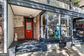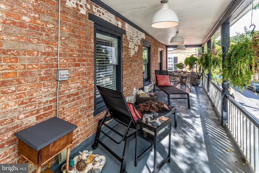 Beautiful industrial Style second floor apartment with a modern flare spans the entire footprint of the building. Welcomed by a covered spacious front entrance which leads to a big hallway, offering a coat closet and the rear door to the back parking lot with lots of space for bikes or additional furniture for storage. A grand stairway heads to the main level that won't disappoint! Renovated with high-end finishes and fixtures, stainless appliances, soapstone countertops, stainless hood above stove, open shelving & tile back-splash in kitchen, concrete tile, chic bathroom, corrugated metal wall detail in the office nook and repurposed vintage pieces add charm and character. The eat-in kitchen is spacious and fits a nice size table beside a big window. The open floor concept of the living/dining room is flooded with natural light. Enjoy entertaining and relaxing on the 35' long covered porch having exposed brick and overhead vintage lighting. Great location in the heart of town with off street parking , private washer & dryer & includes heat, sewer and hot water. Storage in the basement and exclusive attic storage. Rent includes heat!