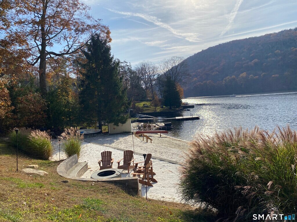 Call for Availability - CLASSIC 1934 LAKE HOUSE. Fully renovated, 3 Bedroom, 2 Bath on private .46 acre lot. Just a short walk to the beautiful Candlewood Trails Beach with expansive, sandy beach on Candlewood Lake and PRIVATE MARINA WITH A BOAT SLIP AVAILABLE (Paid by landlord). The club house overlooks picnic areas, with tables, chairs and a firepit. A variety of other activities such as corn hole tournament and clam bake are planned regularly by the CTA social committee. At the house, a covered porch, with new furniture, overlooks gardens, a brook and a patio with sitting area and fire pit to enjoy sunsets and seasonal lake views. The updated kitchen has a center island, new cabinets, stainless appliances, quartz counter tops and blends into an open floor plan family room ideal for gatherings. Living room is light and bright with stone fireplace, beams and hardwood floors. House is heated by oil but each living space has its own air conditioning and heat-pump. Bedrooms also have individual A/C and heat pumps; all bedroom closets have built-ins. The 2-car, detached garage is configured as his and her offices but could also be used for secure storage. MLS# 24158031