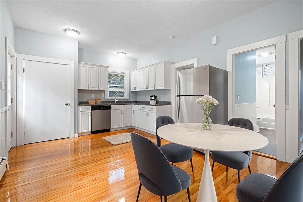 OUTSTANDING 5 bedroom single family on a quiet side street with 2 full bathrooms and a spacious 2 car garage. Both with power door openers and spacious yard. Enormous composite deck and enclosed porch! This beautifully renovated home is freshly painted from top to bottom and has a brand new roof and windows! Be the first one to make this YOUR NEW HOME after it has been tastefully renovated throughout! Updated GAS heat and hot water,updated electrical,and more! HUGE basement providing tons of extra space and a yard that family's will LOVE! Right near the AVON line in North side of town! Easy access to commuter rail,buses,route 24,shopping,and restaurants. Applications will be available at the open house this coming Thursday October 16th from 5 - 6 PM. JUST SHOW UP! MLS# 73442081