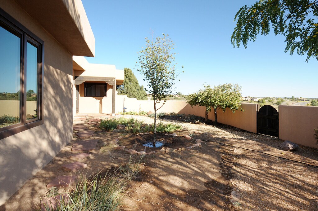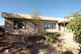 This is a large home on a large lot with beautiful views! Features include Brick floors over radiant heat, 3 Bedrooms, 3 Baths, terrific open floor plan, and wonderful gardens tucked into a delightful 1.64 acre lot. There is even a bonus work room/studio with a washing station. Views from living room to southwest and sunsets, from backyard to the Piedra Negras Hills. This is a must see!
