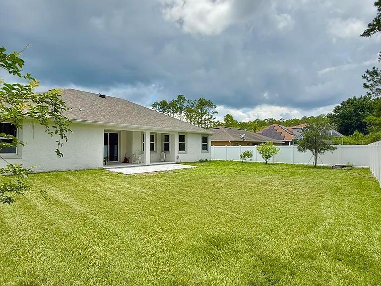 Welcome to this beautiful single-story, spacious 2,338 sq. ft. home in the prestigious Cypress Knolls community of Palm Coast. Nestled in a beautiful golf course setting and just 15 minutes from the beach, this sought-after neighborhood combines elegance with convenient access to the Palm Coast town center. Built in 2022, constructed with concrete block, this gorgeous and upgraded home has so much to offer with an open floor plan. This home boasts 9'4'' ceilings and a seamless, open layout enhancing its airy, modern ambiance. The home also boasts luxury vinyl plank flooring throughout the entire floorplan. When you enter the home you are greeted with upgraded 3D designed walls that bring and elegant and textured design. Upgraded lighting fixtures, 4 bedrooms, 3 full baths with elongated toilets, additional flex bedroom/den, formal dining room, eat in dining nook in kitchen, large living room, laundry room, 2-car garage and a large outdoor covered patio. Outside, enjoy a beautifully extended paver patio within a fully enclosed 6-foot vinyl fence-ideal for gatherings or quiet relaxation. This home has a huge backyard, gutters around the entire home, and upgraded landscaping! A large master suite complete with barn doors to a master bath featuring calcatta laza quartz counter tops, upgraded luxury soft close cabinets, upgraded hardware and faucets, and a large walk in shower with upgraded carrera tiling. From the master bath it also features a custom wardrobe closet, providing organization and style complete with built ins to hold all your clothes and belongings! On the opposite side of the home you will find an upgraded luxury bath with walk in shower and upgraded subway tiles and an oversized luxury vanity complete with its own deep linen pantry. The gourmet kitchen is a chef's dream, showcasing Calacatta Laza quartz countertops that extend into the luxurious primary bathroom, complete with upgraded mirrors and designer light fixtures. With every detail thoughtfully chosen for comfort and sophistication. The large kitchen features upgraded 42" soft close cabinets, calcatta laza quartz countertops with a large 8\' island, upgraded hardware and faucet, a custom backsplash, stainless steel Whirpool stove, microwave, and dishwasher and a large pantry for all your non perishables. This home is truly move-in ready. Don't miss the opportunity to make this Cypress Knolls gem yours! $2750 a month $2800 security deposit Please contact us at Golden Magnolia Realty for more information! / Email: / Website: Apply online! Bedrooms: 4 Primary Bedroom Dimensions: 16' X 14' Bedroom 1 Dimensions: 15' X 11' Bedroom 2 Dimensions: 12' X 12' Bedroom 3 Dimensions: 12' X 12' Total Rooms: 13 Laundry Room Dimensions: 6' X 4' Living Room Dimensions: 17' X 20' Total Bathrooms: 3 Full Bathrooms: 3 Bathroom 1 Dimensions: 8' X 9' Bathroom 2 Dimensions: 6' X 9' Bathroom 3 Dimensions: 12' X 12' ENERGY STAR Qualified Water Heater ENERGY STAR Qualified Washer ENERGY STAR Qualified Dryer ENERGY STAR Qualified Dishwasher Electric Range Garbage Disposal Laundry Features: In Unit Heating and Cooling Cooling Features: Attic Fan, Central Air, Electric Heating Features: Central, Electric Heating: Yes Dining Room Dimensions: 10' X 13' Kitchen Dimensions: 12' X 12'