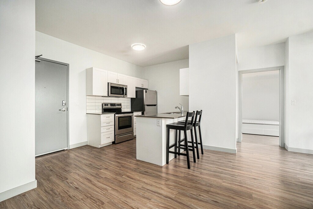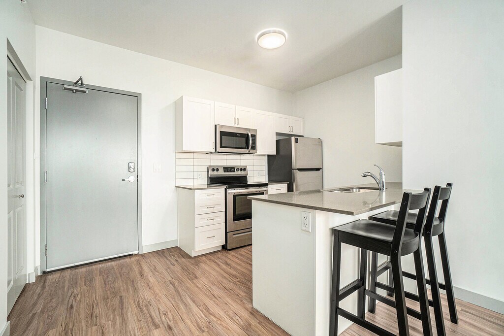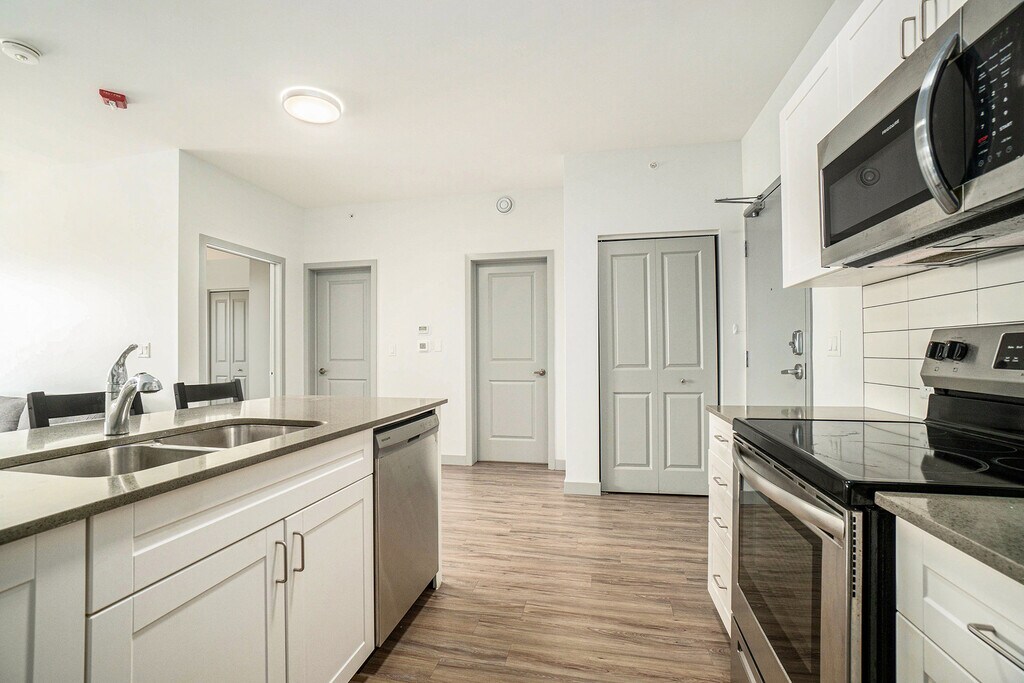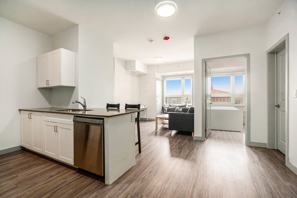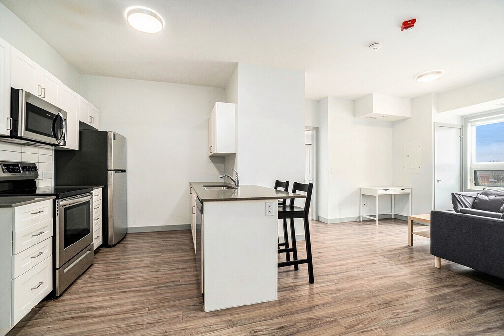 Mural Kingston - 5 Minutes to Campus! Welcome to Mural Kingston, where style meets convenience, and tenants enjoy living in the heart of downtown and just a stone’s throw from campus. Our modern and well-equipped apartment building is just a 4-minute stroll to campus. The property is professionally managed by Mural Kingston, ensuring a smooth and hassle-free living experience. Featuring a gym, study spaces and furnished rooftop terraces, the building also offers optional parking, high-speed Wi-Fi included in rent, as well as bright and spacious furnished apartments. Our 2-bedroom 2-bathroom apartments are thoughtfully furnished with a comfortable sofa and armchair, a coffee table, and stools perfect for casual seating. For your workspace, there are desks paired with ergonomic desk chairs in each bedroom. Sleep soundly in a full-sized bed, each accompanied by a nightstand for your convenience. Stainless steel kitchen appliances, including a dishwasher In-suite laundry: avoid trips to the laundromat or busy communal machines Spacious open plan layout with plenty of kitchen workspace and storage High-speed Wi-Fi throughout the apartment, with ethernet connection to each room. Nestled in a vibrant neighbourhood, this cozy student apartment offers the perfect blend of convenience and comfort. Its prime location ensures easy access to various key spots, including the campus, which is just a 4—minute walk away. Brynn’s Fresh Market on the ground floor of the building, with a Metro, Circle K and Starbucks just minutes away. A short walk takes you into the heart of downtown with various shopping and dining options.