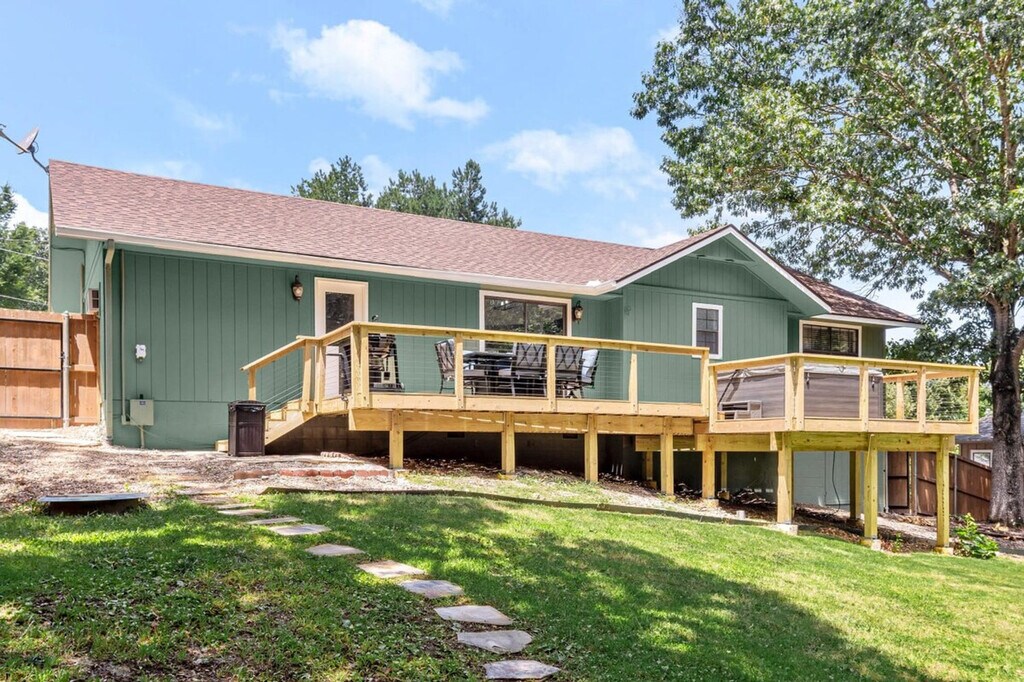 Welcome to your Bella Vista sanctuary! This single-level home features an open-concept living area with a smart TV, electric fireplace, and comfortable seating. Two serene bedrooms—each with a queen bed plus trundle—sleep six guests. The fully equipped kitchen includes stainless appliances, cookware, spices, and a coffee bar. After a day outdoors, unwind on the back deck with a barbecue or soak in the private hot tub while you watch the stars. The fenced yard is perfect for kids and pups, and the garage includes a bike repair station and secure storage for your gear. Designed with you in mind, this home offers a cozy retreat with a well-stocked kitchen featuring modern appliances and a coffee bar. The open-concept living area is perfect for relaxation, equipped with a smart TV and electric fireplace. Enjoy the spacious yard with a grill and outdoor dining area, or take advantage of the private hot tub for a soothing soak under the stars. We warmly welcome up to two dogs with an additional fee of $75 per pet per stay due to extra cleaning needs. For a pleasant stay, please crate your dogs when you're out and keep them off the furniture. It's crucial to pick up after your pets, as we will charge an additional $50 if droppings are left behind in the yard. There’s plenty of free parking on-site in the driveway. Nestled in a quiet Bella Vista neighborhood surrounded by lush forests and rolling hills, this home is just minutes from the Back 40 trail system, ideal for world-class mountain biking and hiking. It's also close to beautiful lakes for kayaking, fishing, or peaceful picnics, and a short drive to top-rated golf courses and scenic lookout points. Bentonville’s restaurants, shops, and the Crystal Bridges Museum are just a quick trip away. This is a smoke-free home. Should you wish to smoke, please do so outside and properly dispose of butts. Smoking inside will incur a charge for smoke remediation, which can exceed $1,000. Parties or events are strictly prohibited unless pre-arranged. Quiet hours are from 9 PM to 8 AM to respect our neighbors. All guests must be registered to comply with local ordinances, with unregistered overnight guests incurring a $50 fee per night. Late check-outs without pre-approval will result in a fee of no less than $100, and if more than 90 minutes late, the greater of $250 or the full rate for another night will be charged. Please do not use bathroom towels to clean your bikes, as replacement charges will apply. Work ready with high-speed Wi-Fi and a table to work, this home is remote work-friendly, ensuring you can stay connected and productive during your stay. A laptop computer is not included. Registration Number: STR-2024-56746 [SI]