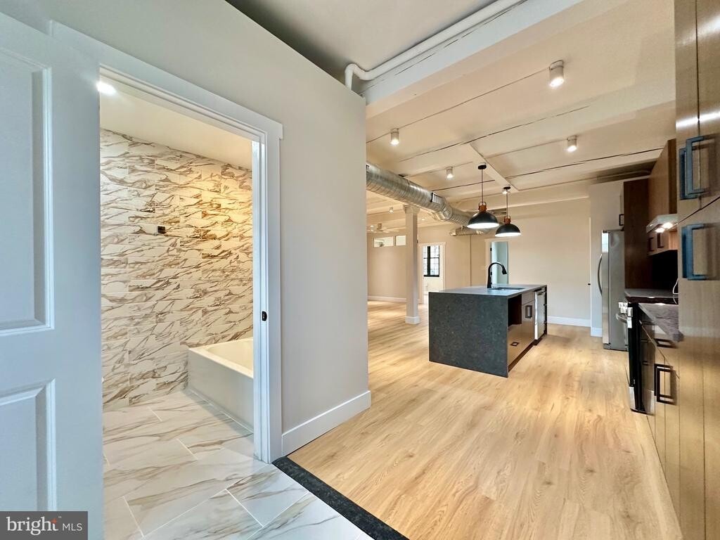 Open House on Saturday, October 25, 12:30-1:15 PM! Available now! If you have been looking for a large, beautiful loft apartment - this is it. Brand-new high-quality renovations. Featuring high ceilings & large windows. Nestled on a quiet residential block in historic Germantown, it’s just steps from local cafes, parks, and public transit with easy access to Center City. When you walk in, you will see the large kitchen/living area. Recessed lights above the gorgeous island make the atmosphere perfect for entertaining. A lot of countertops, beautiful cabinets, stainless steel appliances, perfect for cooking enthusiasts. The living room can fit anything you can imagine - the biggest couch, an entertaining area, gym - whatever. The focal point of the living area, the exposed brick wall brings a unique touch and countless possibilities for your design ideas. 3 large bedrooms which can easily fit king-sized beds, and 3 beautiful bathrooms, which have amazing details - defogging mirrors, lights; beautiful gold, black accent details throughout the bathrooms. Applicants must show a combined gross verifiable monthly income of at least three times the rent, a preferred credit score of 650 or higher (lower scores aren’t automatic disqualifiers), no open collections, and at least one year of positive rental and employment history. No eviction judgments within the past four years. Each application is reviewed individually, and strong income, references, or a qualified co‑signer may offset weaker areas, though approval isn’t guaranteed. Bank statements may be requested. Pets are ok with a non-refundable pet deposit - $250/cat & $350/dog (under 50 pounds). No pet rent. First month’s rent, last month’s rent, and a security deposit are due at move‑in. Tenants cover all utilities, including a $20‑per‑person month water fee. RE/MAX Plus complies with all fair housing laws.