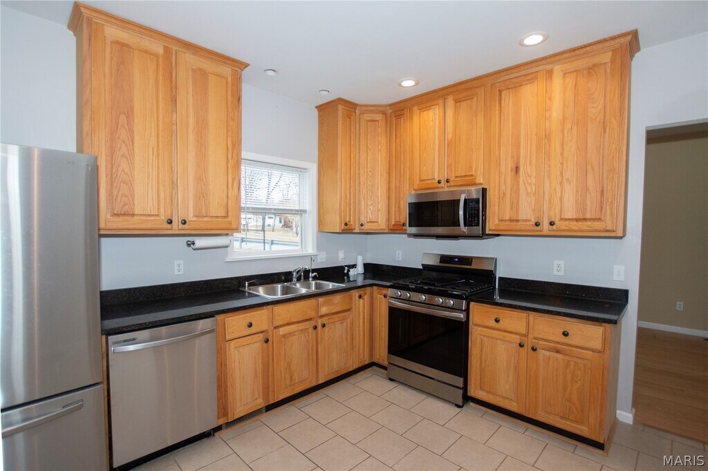 Home for rent! beautifully renovated 3-bedroom 2 bath home in Valley Park, near VP Schools. Enter to find the front living room with wood floors, kitchen with custom cabinets, granite counters, stainless-steel appliances, tile floors, and pantry. All windows new in 2013 with installed mini blinds. Breakfast room, main floor laundry, family room with wood plank floors, access to back yard, patio and garage. The main floor primary suite boasts wood floors and large primary bath with stunning stone walk-in shower with multiple shower heads, large vanity, and walk-in closet. Upstairs find two additional large bedrooms with walk-in closets and a full bath. Main and upper level completely rebuilt in 2013 with 9-ft ceilings, new electric, plumbing, dual furnace and a/c, roof, and tankless water heater. Second driveway. Requires one month security deposit, credit score 650+, $40 app fee, no pets, w/d included. Tenant pays water, gas, electric. Sewer added to monthly. Landlord pays Trash.