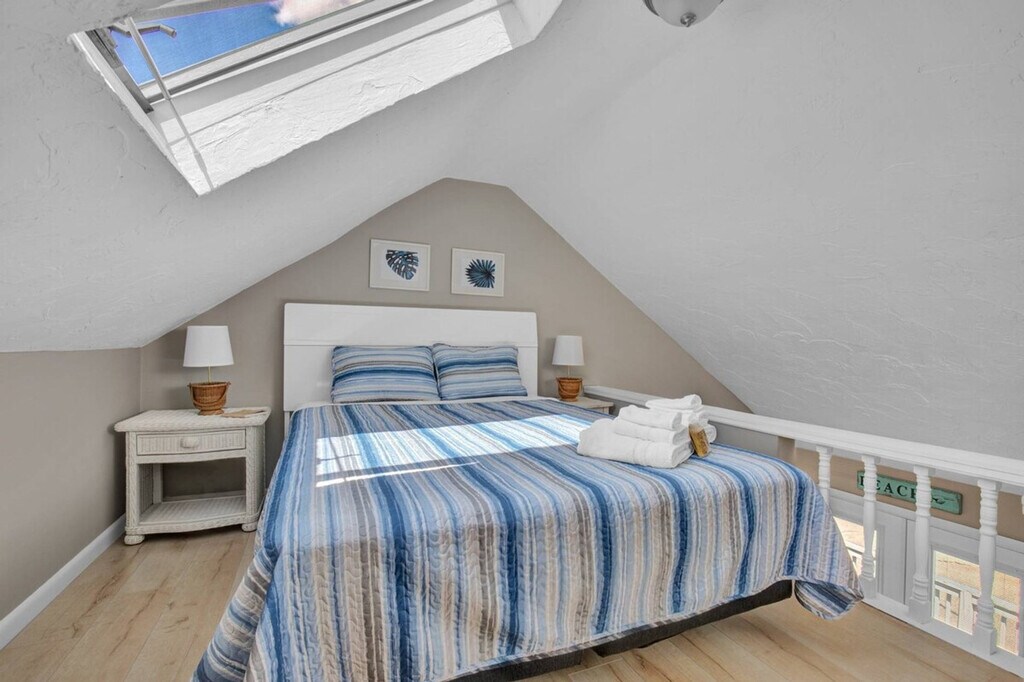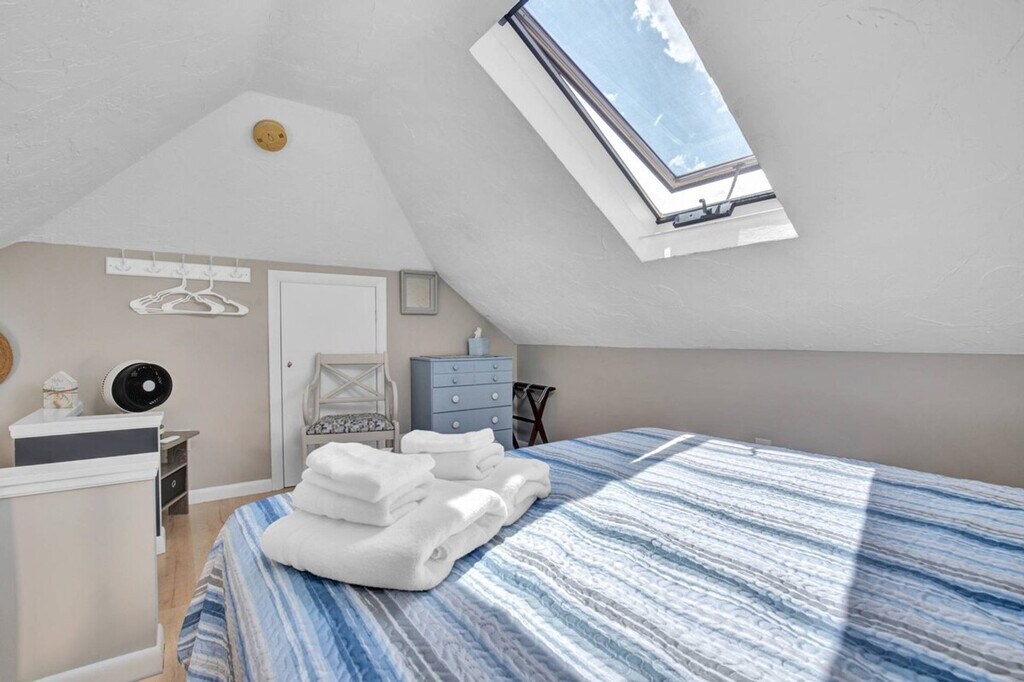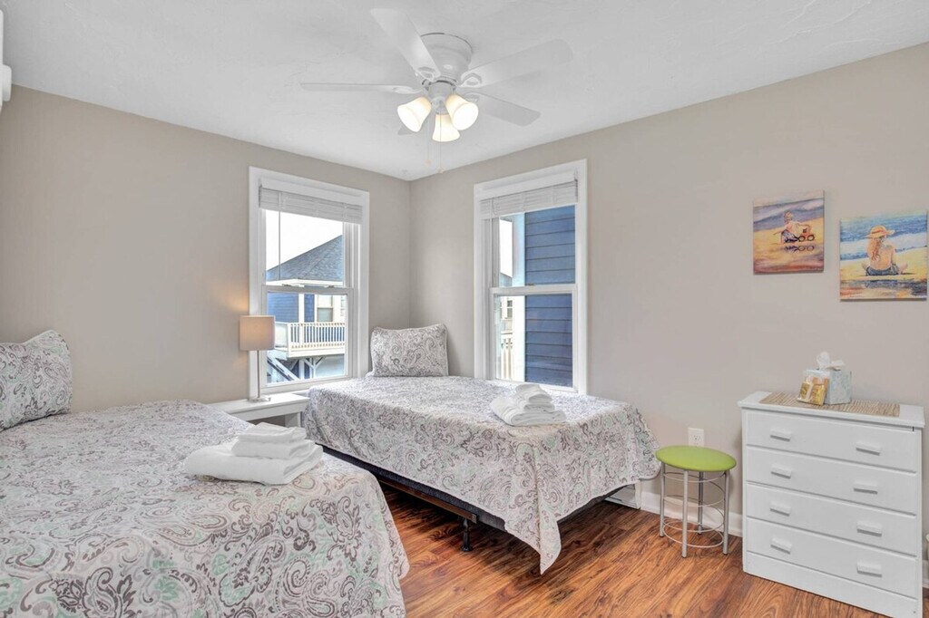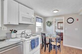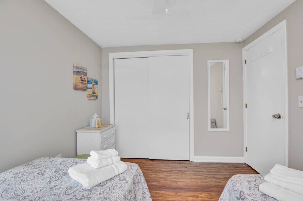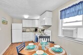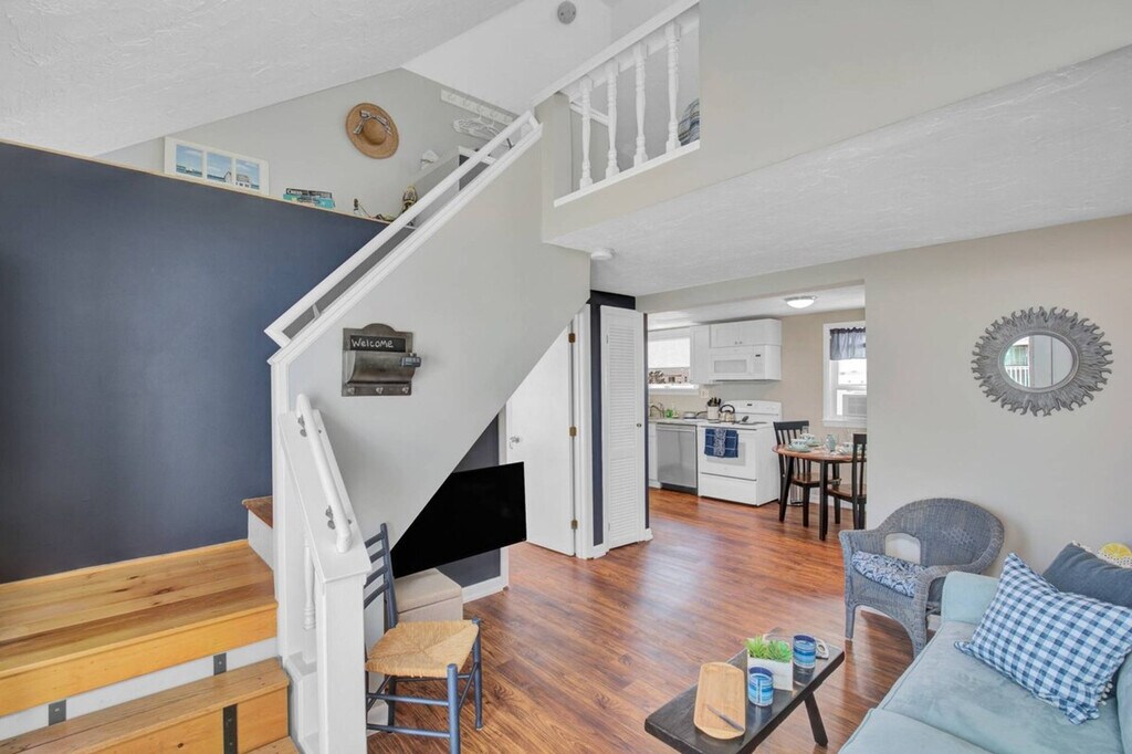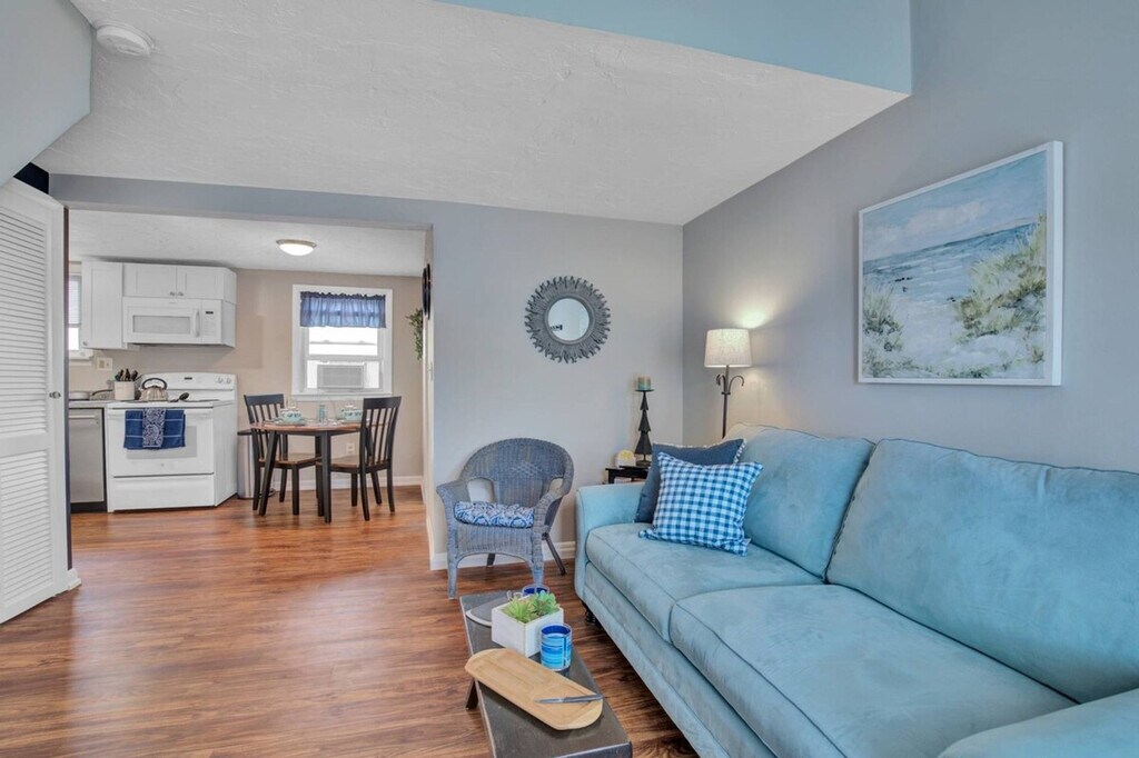 Welcome to Odysea, a beautifully furnished and newly refurbished condo located just steps away from the vibrant Hampton Beach. Situated on the north end, this condo offers convenient access to the beach, nightlife, boardwalk, eateries, and shops. Feel at home as you enter through the front French doors into a spacious open floor plan with a modern kitchen and living space. The kitchen is equipped with full-sized appliances including a dishwasher, stove, microwave, and fridge, and is fully stocked with pots, pans, and dishes, making it your home away from home. The living room features a cozy couch and side chairs, perfect for camaraderie and conversation, or enjoying your favorite movie on the big screen Smart TV. Step out to the semi-private deck with bistro seating for a breath of fresh air. Odysea offers excellent parking with two private secured garages, providing parking for up to four cars. For families, a luxury Pack-n-Play or other children's furnishings are available for an additional charge, subject to availability. Odysea is ideally located just a 2-minute walk from the Hampton Beach Boardwalk and a 4-minute walk to the expansive sands of Hampton Beach. This prime location allows you to enjoy all the amusements and attractions that Hampton Beach has to offer, from fireworks and concerts to delicious seafood and classic beach activities. Smoking is strictly prohibited, and guests will be fined and immediately evicted for smoking or vaping in the home or on the property. No parties, events, performing artists, or bands are allowed at any time, as these are cause for eviction with no refund. If any damage impacts the ability to offer the home for future guests, you will be held liable. Quiet hours are between 10 PM and 8 AM. Pets are not allowed in the condo. The condo provides high-speed Wi-Fi, making it suitable for both work and play. Whether you're streaming your favorite shows or catching up on emails, you'll have the connectivity you need. [SI]
