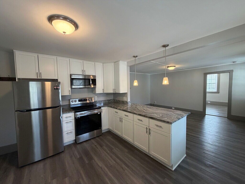 Heat and Hot Water Included! This charming second-floor apartment features 1 bedroom and 1 bathroom within the historic Perkin's Manor. Unit #5 has undergone recent updates that include: new flooring, a modern kitchen complete with granite countertops and new appliances, fixtures and paint. Natural light floods the space. Situated conveniently across from Colonial Village Supermarket and just a short stroll from the shops and businesses on Main Street. One-year lease, non-smoking building. Residents have access to shared laundry facilities within the building, with the option to rent a garage/storage bay for an additional fee. Small dogs or cats may be considered with an extra fee and approval from the owners. By submitting your information on this page you consent to being contacted by the Property Manager and RentEngine via SMS, phone, or email.