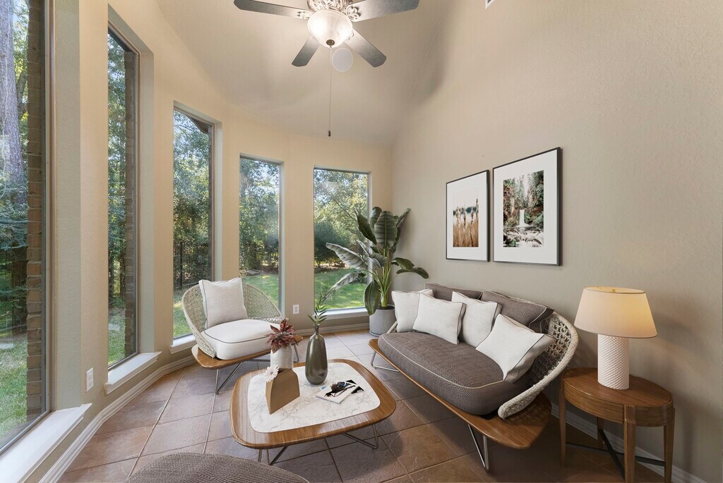 Meticulously maintained one-story Darling home in the highly coveted neighborhood of Cardinal Point in Sterling Ridge. The homeowners’ care and attention to detail shine throughout the house—from the elegant arched entryway to the custom light-filled sunroom overlooking the private backyard. Enjoy a spacious open-concept layout where the kitchen smoothly connects to the family room. Walls of custom windows fill the home with natural light while preserving privacy with the home backing to a green area. Oak wood floor accentuate the entryway,dining room,and office. Thoughtful features continue with custom picture windows in the family room and sun room,custom bookcases in the office,custom cabinetry in the living room,a spacious garage with epoxy flooring and abundant storage cabinets,and a walk-in attic offering additional storage space. With no back neighbors,you’ll love the peace and privacy of this home. Recent updates include a brand-new A/C (2025) and light fixtures (2025) MLS# 87289708