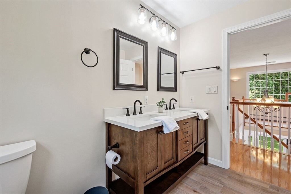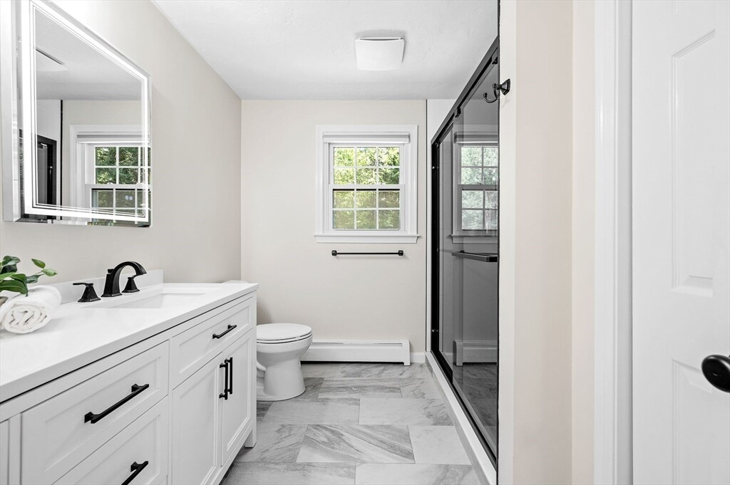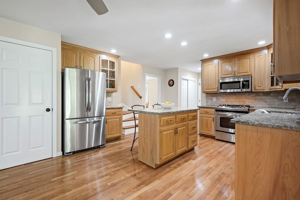 Robert SmithLove being near town, yet crave privacy? This 4 bedroom, 3.5 bath brickfront Colonial offers the best of both worlds, tucked behind trees on a peaceful lot. The open floor plan connects a cabinet-packed kitchen w/granite counters to an open & airy fireplaced living room leading to the deck. A sunny, tiled sunroom w/beadboard ceiling overlooks a private backyard & paver patio w/firepit. Host holidays in the dining room, then gather in the living room for after-dinner conversations. The entire home was recently painted; all baths were refreshed w/modern touches. Convenient 1st floor laundry, too! Head upstairs to find 3 bedrooms, inc. a master suite w/walk-in closet & updated bath w/walk-in shower. Need more space? The 3rd floor features a den,full bath & 4th bedroom, ideal for teens or guests. Gas Generac Generator; fully paid solar panels=low energy bills! Town water/sewer, gas heat & cooking, & central air. Just moments to shops, trails, commuter trains, Mill Pond sunsets & canoeing!