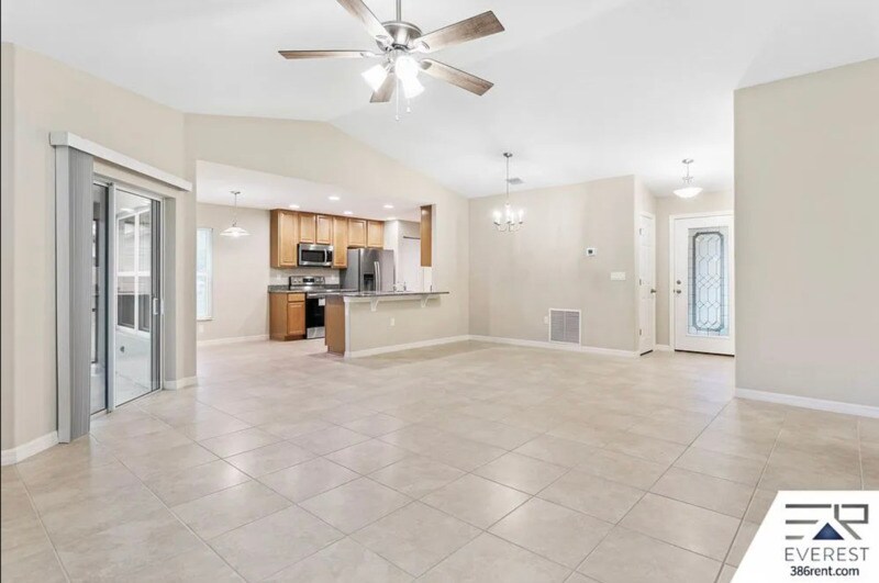LIKE NEW, FULLY FENCED 3 BEDROOM, 2 BATHROOM HOME FEATURES LIKE NEW TILE FLOORING THROUGHOUT... KITCHEN WITH STAINLESS STEEL APPLIANCES, GRANITE COUNTERTOPS, UPGRADED CABINETRY, BAR COUNTERTOP AND BREAKFAST NOOK. LARGE MASTER SUITE WITH WALK-IN CLOSET AND WALK-IN SHOWER. SPACIOUS LIVING ROOM WITH VAULTED CEILINGS AND DOUBLE PANELED SLIDING DOOR LEADING TO THE SCREENED-IN BACK PORCH AND LARGE, PRIVATE BACKYARD... 2 CAR ATTACHED GARAGE WITH ELECTRIC OPENER. LOCATED IN THE POPULAR LEHIGH WOODS NEIGHBORHOOD, WITH EASY ACCESS TO SCHOOLS, SR 100, SHOPPING, TOWN CENTER, BEACHES, MAJOR HIGHWAYS, DAYTONA BEACH AND HISTORIC ST AUGUSTINE... SOLID LANDLORD! AVAILABLE FOR IMMEDIATE MOVE-IN. $1950 ON 3-YEAR LEASE $2050 ON 2-YEAR LEASE $2150 ON 1-YEAR LEASE