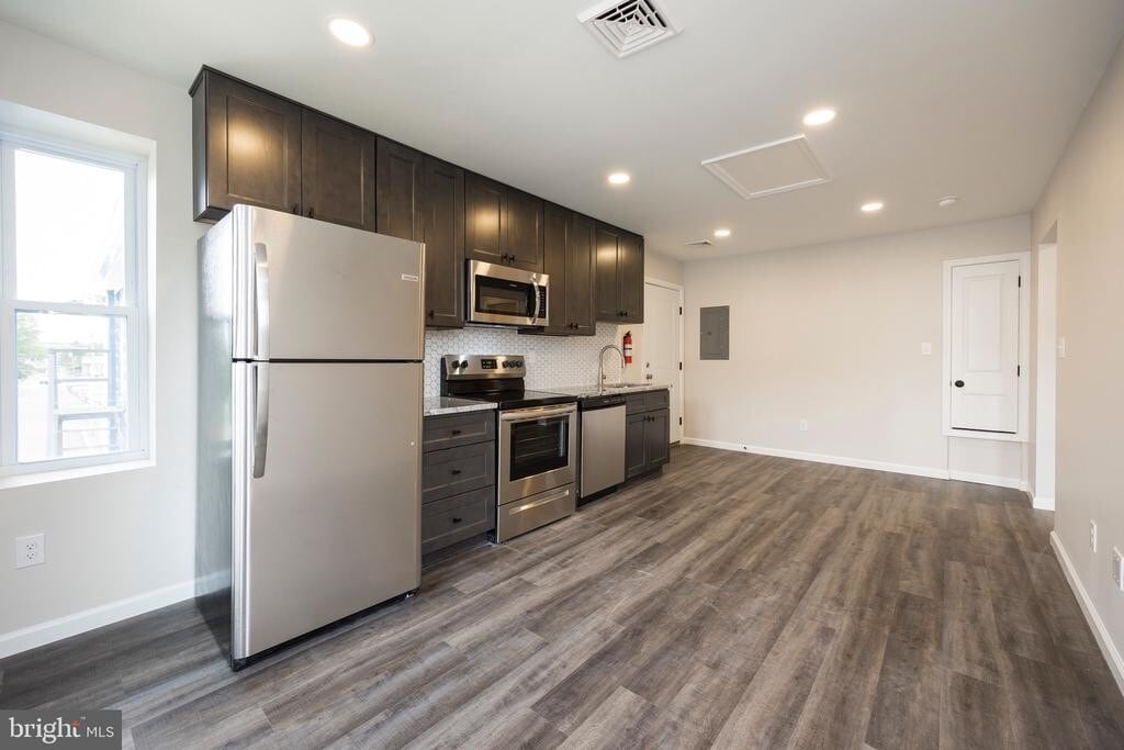 Welcome to this spacious, modern-contemporary one-bedroom apartment located in the heart of downtown Royersford. This beautifully renovated unit offers an open-concept living and kitchen area with a convenient bump-out perfect for dining. Recessed and LED lighting throughout the apartment creates a bright, inviting atmosphere. The large bedroom features a double-door slider closet, while the extra-spacious bathroom showcases a stunning design with black matte fixtures and large-format tile. This apartment includes in-unit laundry, is pet-friendly, and may be available furnished for an additional fee. Lease terms range from 16 to 24 months, with shorter-term leases available at a slightly higher rate. The building was fully renovated from top to bottom and includes four outstanding apartments. Each home features central air, a high-efficiency heat pump system, granite countertops, stainless steel appliances, luxury vinyl plank flooring, and a beautifully tiled shower. Energy-efficient construction includes spray-foam insulation and 5/8-inch drywall for improved soundproofing. Safety features include hardwired smoke detectors, exterior motion-sensor lighting, and security cameras around the property. All apartments are FIOS-enabled and feature recessed lighting throughout. First-floor apartments offer private exterior entrances. Located within walking distance to Annamarie’s, Downtown Restaurant, Handel’s Ice Cream, and other local favorites, this property offers convenience and lifestyle in one. Royersford’s prime location provides easy access to Phoenixville, King of Prussia, Malvern, Pottstown, Reading, and Philadelphia. Rent is $1,450 per month and includes sewer and trash. Residents are responsible for electricity, water, and FIOS or cable. Security deposit is $1,450, with a one-time $200 pet deposit and $20 monthly pet fee (for a cat or small dog). Move-in requires first month, last month, and security deposit. This apartment will be available for move-in beginning November 8, 2025, with showings starting November 1st.