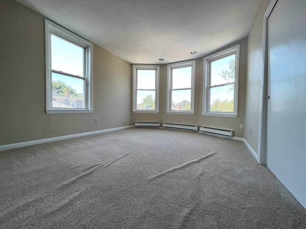 Location!Location!Location! This beautiful top floor-unit nestled on a quiet side street a few minutes from Central Square. Two generous bedrooms with great closet space. Large primary bedroom filled with brightness and warmth from bow windows. Kitchen features white cabinets and recently installed stainless steel appliances. The kitchen connects to the southeast facing living/dining room. Sunny morning,this room with two sets of sliding glass doors is always sun-soaked,casting a warm glow on the hardwood flooring and walls. Beyond the two glass doors is a private balcony radiating a cheerful and vibrant energy,making it a joyful place to be. In-unit laundry is designed for telecommuting and a fully remodeled full bathroom completes this lovely home. Restaurants,shops,parks and entertainment are 2 blocks away. With short distance to Red Line T and easy access to buses,it is the dream home for commuters! MLS# 73424676