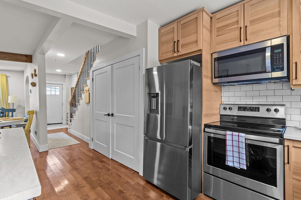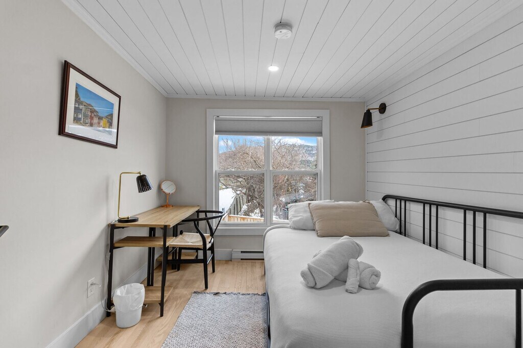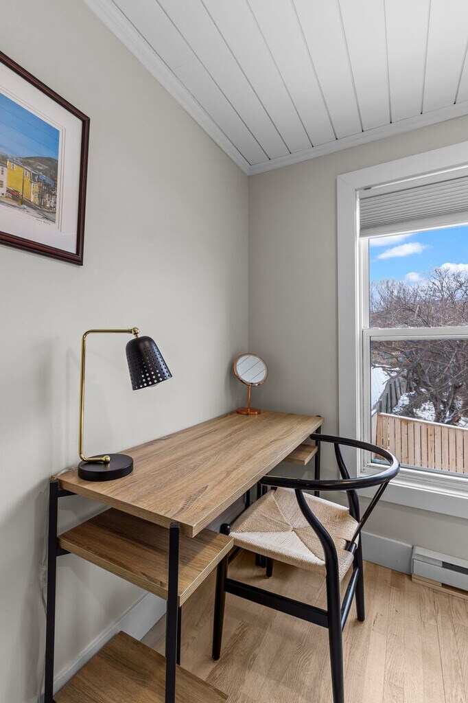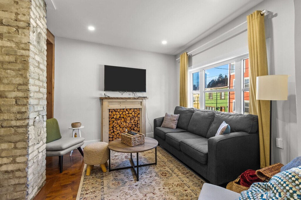 The advertised rate of C$3,781/month is the lowest available price, based on a 1 month(s) stay with a move-in date of April 13, 2026. Rates vary depending on the duration of stay, season, and other parameters. For exact pricing and additional pricing components, please visit our website and enter your desired move-in and move-out dates. The rate is applicable when billed upfront; it can be higher if billed in multiple payments. Welcome to your favorite accommodation in town. Feel at home in this modern townhouse, filled with character and natural light, carefully created to be the perfect home base for your St. John's adventure. There are six steps to the front door and a full flight of stairs to the second-floor bedrooms. Step up to the colorful facade and enter the open-concept main floor. The inviting living room features a decorative fireplace, a unique stone pillar, and a warm wood beam, creating a stylish space to relax. This level also includes a dining area for four and a fully equipped, modern kitchen with stainless steel appliances and classic subway tile. From the dining area, a door leads out to your private backyard and deck space, perfect for enjoying a quiet moment. The bright and clean full bathroom includes a shower/tub combination, stylish hexagonal floor tiles, and complimentary East Coast Glow amenities for a touch of local luxury. A washer and dryer are located within the home. A high chair and crib are available upon request. A street parking permit for one vehicle is provided. Located on the iconic Signal Hill Rd, you are just minutes away from the city's best attractions. Enjoy a morning coffee from The Battery Cafe, a treat from Craig’s Cookies, or explore historic Signal Hill, all just a short walk from your front door. You're just a 3-minute drive or a scenic walk from Signal Hill, where you can enjoy a picnic, hike the trails, and learn about the city's rich history. For a great local experience, take a 5-minute walk down to Duckworth Street to visit Bannerman Brewery. The neighborhood is very walkable, with many cafes, shops, and attractions just steps away. This home is equipped with a Netatmo device that monitors for smoke and excessive noise levels to ensure the safety and comfort of our guests and neighbors. This home is not equipped with air conditioning. There is no barbecue available. Includes a dedicated laptop-friendly workspace with a view of the backyard. Registration Number: 6751 [SI]