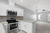 Contemporary apartment located within a gated community,conveniently situated just minutes from the expressway for easy commuting. This residence features wood-look tile flooring and granite countertops throughout,complemented by stainless steel kitchen appliances including a stove,refrigerator,and microwave. A full-size washer and dryer are included. Enjoy an oversized private patio ideal for outdoor relaxation. Two assigned covered parking spaces provided. Pet-friendly with restrictions. Move-in ready—ask about available move-in specials and schedule your showing today!