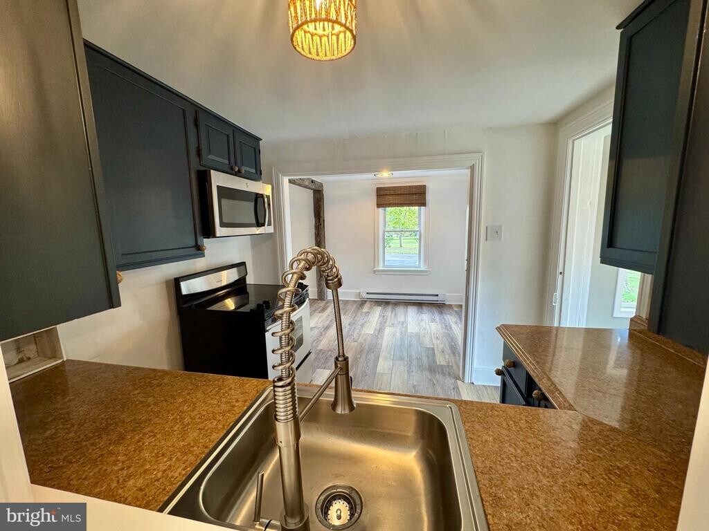 Completely renovated, 2 bedroom apartment located in the boro of Trappe! The main floor features a kitchen with modern navy cabinets, dining area, living room, and sun-filled bonus room that would serve great for a home office or sitting area. Both bedrooms are located on the second floor, are maple in size, feature fresh paint and new carpet. The full bathroom is also located on the second floor and features a double vanity. Laundry hook-ups are available in the basement. 2 parking spots are included. Tenant is responsible for electric (baseboard heat), water, sewer, cable/internet. Lawn care and snow removal are taken care of by the Landlord. No pets.