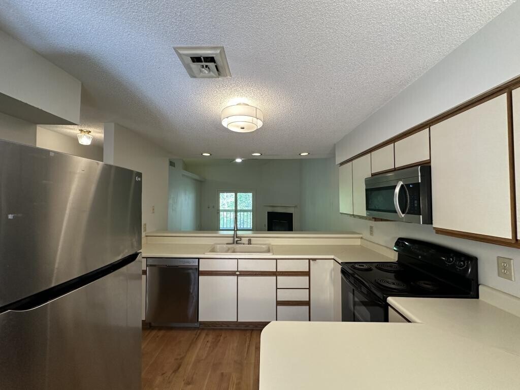 2/2 Condo in the Villages of Laurel Creek. Would you love to live in a lushly landscaped neighborhood balancing nature, style and amenities? Can you imagine yourself enjoying the convenience of an onsite swimming pool, tennis courts, playground and tree-lined roads meandering through a thoughtfully planned community with common areas shaded by towering trees, picnic tables and the picturesque Laurel Creek? Welcome home to this well-maintained, 2 bedroom, 2 full bath condominium with spacious rooms and cathedral ceilings. This is an intelligently designed home. Closet space is abundant throughout, the kitchen boasts expansive, low-maintenance counters with lots of cabinet space, stainless steel appliances and an eat-in nook plus large breakfast bar. The kitchen opens to a large family room with soaring, architecturally interesting ceilings, plant shelf and access to a private balcony with a view of the treetops where you can also hear the creek rolling by. The fireplace provides a lovely focal point for the area. A roomy master bedroom offers 2 large closets, and en suite bath with updated, retro fixtures. Additionally, the other bedroom is separated from the master by a bathroom which ensures privacy, with a convenient full-size washer and dryer closet in between. This neighborhood haven is perfectly close to area freeways, The Blue Ridge Parkway, shops, restaurants and many medical facilities. It's the perfect abode for someone who values a quiet, low-maintenance lifestyle, with an abundance of activity options nearby. It's hard to find a Condo like this! Contact us for a showing ASAP! / Lease is 12 months Pets considered with $500 refundable pet deposit (final approval needed from owner) Trash and landscaping included Electric, internet and water/sewer are the responsibility of the tenant No smoking indoors Condo is on 2nd floor
