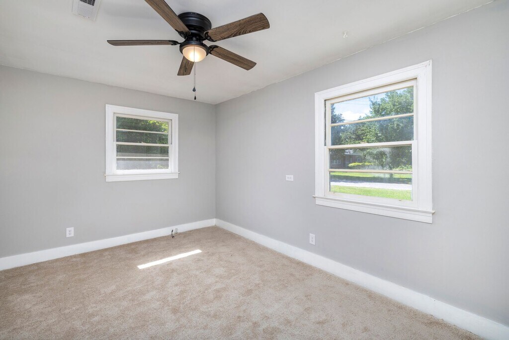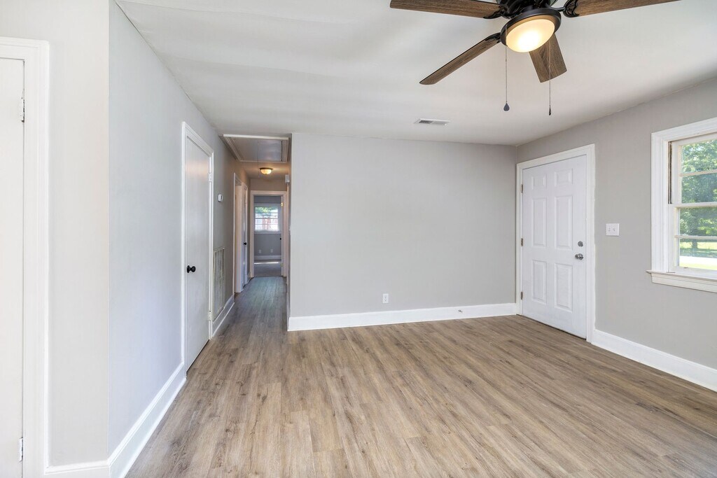 Charming 3-bedroom, 2-bath brick home on a corner lot. Enjoy the bonus room, perfect for an office/playroom or 4th bedroom. This home features brand new luxury vinyl plank flooring, a new HVAC system, and fresh exterior paint. The modernized kitchen and bathrooms offer sleek finishes and new fixtures throughout. Ceiling fans in every room enhance comfort and style. The fenced yard offers a safe space for kids and pets to play. This home combines classic charm with contemporary updates, ready for you to move in and make it your own!