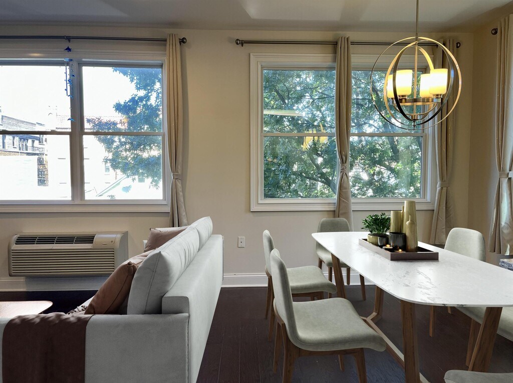 This luxury 2-bedroom, 2-bathroom condo perfectly combines convenience, comfort, and value. Located on a quiet street in a modern elevator building, the home features an open concept living and dining floor plan, an upgraded kitchen with stainless steel appliances, and beautiful hardwood flooring throughout. The spacious primary bedroom includes an oversized closet, while the second bedroom is versatile—ideal for a home office, gym, kids’ room, or guest space. Additional highlights include an in-unit washer and dryer, touchscreen smart home gym, deeded garage parking, and proximity to restaurants, groceries, and shopping (American Dream, Hmart, Whole Foods, Trader Joe, Mitsuwa, etc). With a few minutes’ walk to bus stations, this home offers a super easy commute to Manhattan in under 20 minutes.