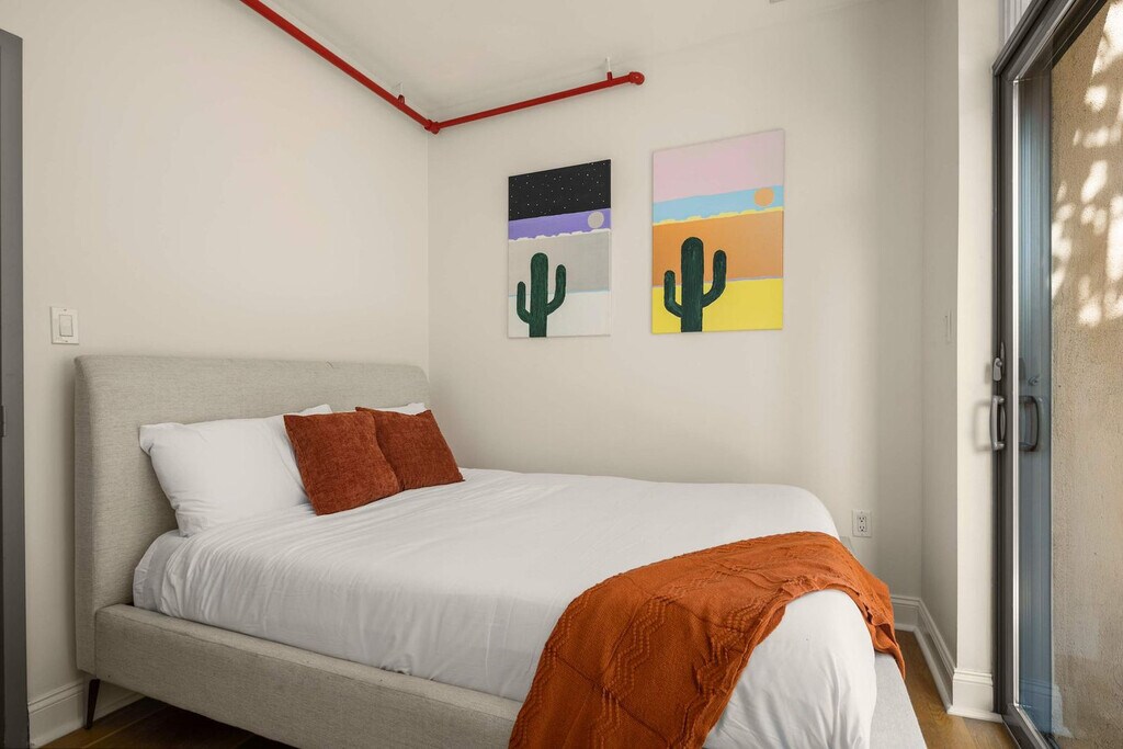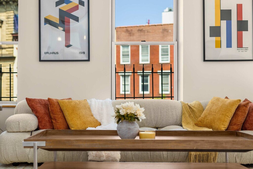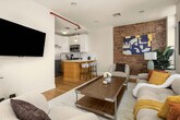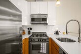 Bathed in natural light, this spacious 1-bedroom apartment in prime Williamsburg pairs high ceilings and refined finishes with rare outdoor space. Two private balconies, a sleek chef’s kitchen, and in-unit laundry elevate everyday living. Just steps from the JMZ and iconic spots like Peter Luger’s, it offers a polished, easygoing stay in one of Brooklyn’s most vibrant enclaves. Inside, the open-concept living space is framed by high ceilings and oversized windows that invite natural light throughout the day. The main living area is ideal for relaxing or entertaining, with hardwood floors underfoot and easy access to two private balconies—perfect for morning coffee or evening drinks with a view. The kitchen is fully equipped for everyday cooking or elevated dinners at home, featuring Caesarstone countertops, a classic white subway tile backsplash, and a suite of premium appliances by Fisher Paykel, Bertazzoni, and Bosch. The layout flows effortlessly into the living area, keeping the space open and social. The bedroom is generously proportioned, designed with comfort in mind. A queen-size bed with luxe linens and a hotel-quality mattress ensures restful sleep, while ample closet space keeps belongings neatly tucked away. Large windows continue the home’s bright, airy feel. A contemporary bathroom features clean finishes and quality fixtures, while the full-size in-unit washer and dryer add practicality for longer stays. High-speed Wi-Fi and smart TV capabilities are included, making remote work or unwinding easy and efficient. Utilities for this unit are included in the listed price including Wi-Fi, electric, and heat. Excessive use of A/C exceeding $250 per month will be billed back to guests after move-out. Whether you're settling in for a month or several, this fully furnished apartment delivers both the energy of Williamsburg and the calm of a well-appointed home. With the JMZ trains just blocks away and destination dining at Peter Luger’s and St. Anselm within walking distance, the location offers seamless access to everything that makes Brooklyn special. Smoking is not allowed on the property. [SI]