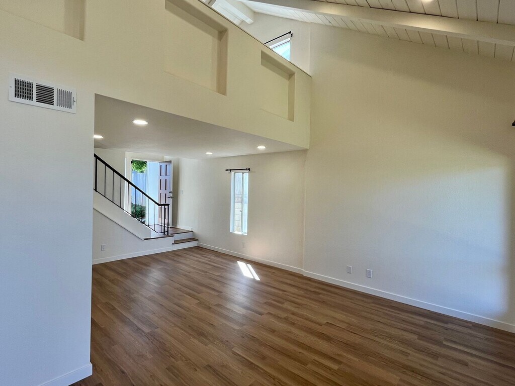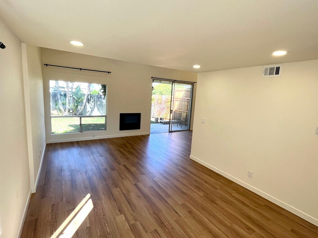 Newly refreshed 2 bed, 2.5 bath townhome with private yard west of Hwy 101 in Leucadia. Just a short walk to Beacons or Grandview beach access. Located on cul-de-sac just one block from Neptune Ave. Two car garage, open beam ceilings in master bedroom, private balcony, vinyl plank throughout, new paint, fixtures and appliances. Electric fireplace, vaulted ceilings and new lighting. One year lease No pets/smoking Renters Insurance Required