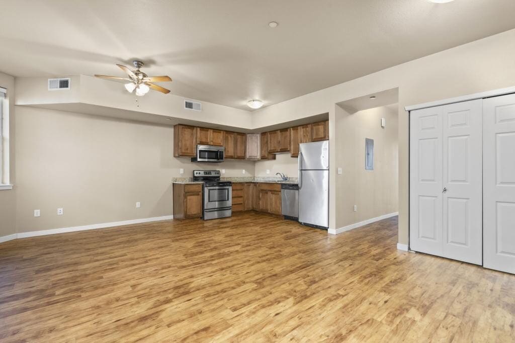 For Rent - 140 E. First St. Unit 100 | Loveland Available Now $1,795.00 per month Security Deposit: $1,795.00 Enjoy downtown Loveland living in this 2-bedroom, 2-bathroom unit all on one level, ideally located just steps from restaurants, shopping, the library, and the Chilson Recreation Center. This ground-level unit offers a comfortable and functional layout with a bright living area, open kitchen, and nicely separated bedrooms, making it a great option for easy, low-maintenance living. Instant hot water. Rent is $1795.00 per month, and the unit is available now. One dog is allowed: no cats. Tenant pays gas and electric, while the owner pays water, sewer, and trash. Two parking spaces included. No smoking inside or outside of any kind. Please call our office at for more information or to schedule a showing. The prospective tenant has the right to provide to the landlord a portable tenant screening report, as defined in section 38-12-902 (2.5), Colorado revised statutes; and if the prospective tenant provides the landlord with a portable tenant screening report, the landlord is prohibited from charging the prospective tenant a rental application fee; or charging the prospective tenant a fee for the landlord to access or use the portable tenant screening report. Must be within last 30 days! We are not linked to Zillow and do not see any application from them. The screening report must be made available to the landlord at no cost directly from the consumer reporting agency or through a third-party website that regularly engages in providing consumer reports. Requirements: Good Credit 660 or higher, Income 2 times the amount of rent, good rental references or Homeowner, pass a criminal background check. All requirements will be verified. Application fee is $50.00($15.00 background check and $35.00 processing fee). Equal Housing Opportunity Provider. Louisa Scheele (owner, broker). Scheele Property Management 1425 W. 29th St. Loveland, CO 80538 Call Scheele Property Management at to schedule a showing or for more information.