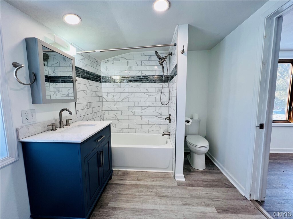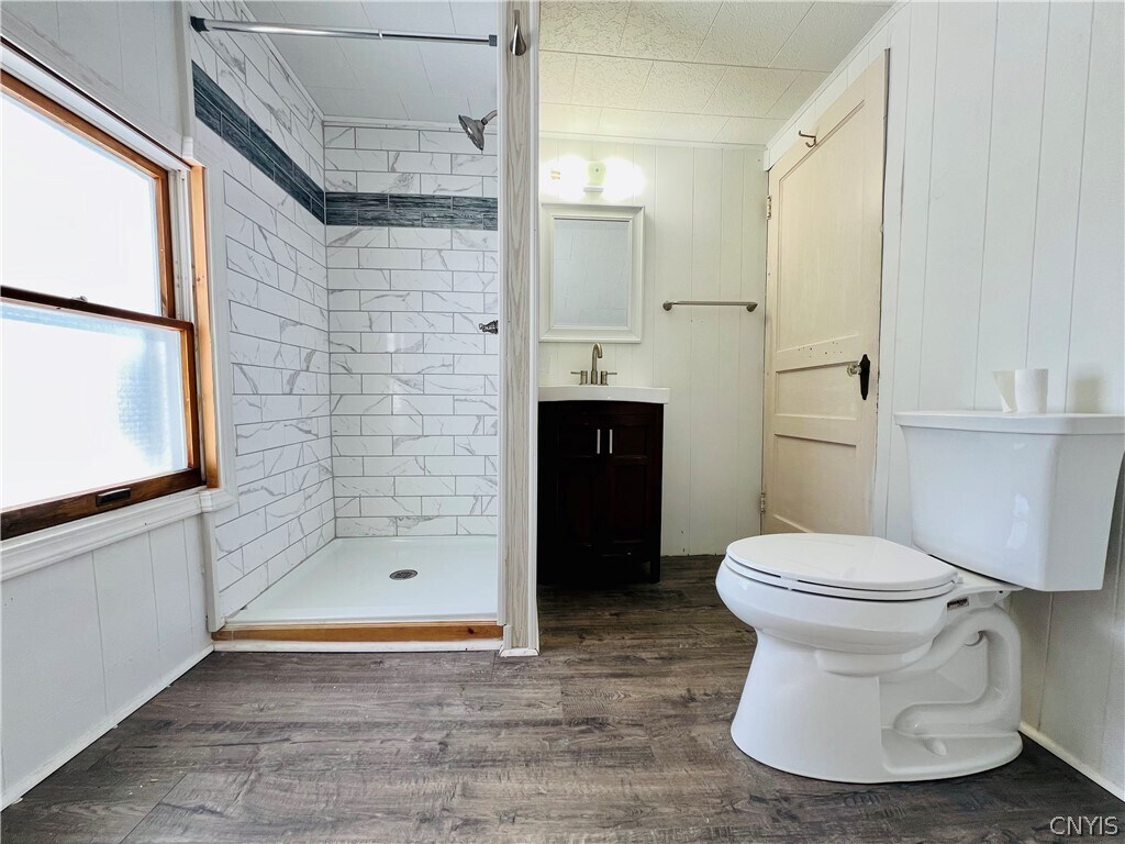 This updated three-bedroom home is ready to be enjoyed by its next tenant! The property features a fully enclosed porch,updated flooring throughout,and two full bathrooms with beautifully tiled showers. The recently renovated kitchen is equipped with matching stainless steel LG Bluetooth-enabled appliances,offering both modern style and functionality. The first-floor bedroom includes direct access to a private back deck overlooking the backyard,where tenants may enjoy courtesy use of a brand-new stainless steel gas grill. A full bathroom on the main level is outfitted with matching Samsung washer and dryer units for added convenience. Off-street parking with space for multiple vehicles is available. Tenants are responsible for all utilities and services,including water,sewer,National Grid,garbage removal,lawn care,and snow removal. Pets may be considered with additional fees. A completed rental application is required prior to scheduling a showing. *Please note: Tenants will not have access to basement or garage bays*