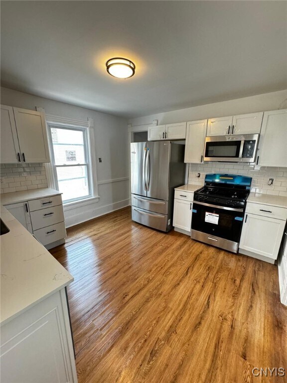 2 bedroom 1 bathroom apartment in two family house with lots of natural lights Newly renovated,freshly painted,brand new kitchen with stainless steel appliances,new flooring in the kitchen,hardwood flooring throughout the apartment. Master bedroom comes with good sized closet room. Partially fenced in backyard,shared driveway. Washer and dryer hookups available in the basement No Smoking 1+ year lease