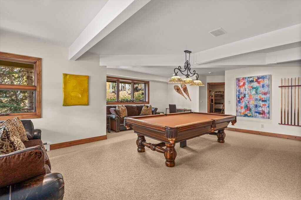 This welcoming home in the exclusive Wood Run subdivision offers a private setting with excellent ski-in/ski-out access to Alpine Springs ski lift and Funnel ski run. After a day on the slopes enjoy time with family or friends in the game room complete with a wet bar, pool table; or kick back in front of the flat screen TV next to a roaring fire in the den. During the warmer months fire up the barbecue and grill out in the beautiful weather. After dinner soak in the outdoor hot tub. The patio and deck areas are perfect for entertaining. With six bedrooms, there is room for a party of 16. Pets will be considered. STR# 041256