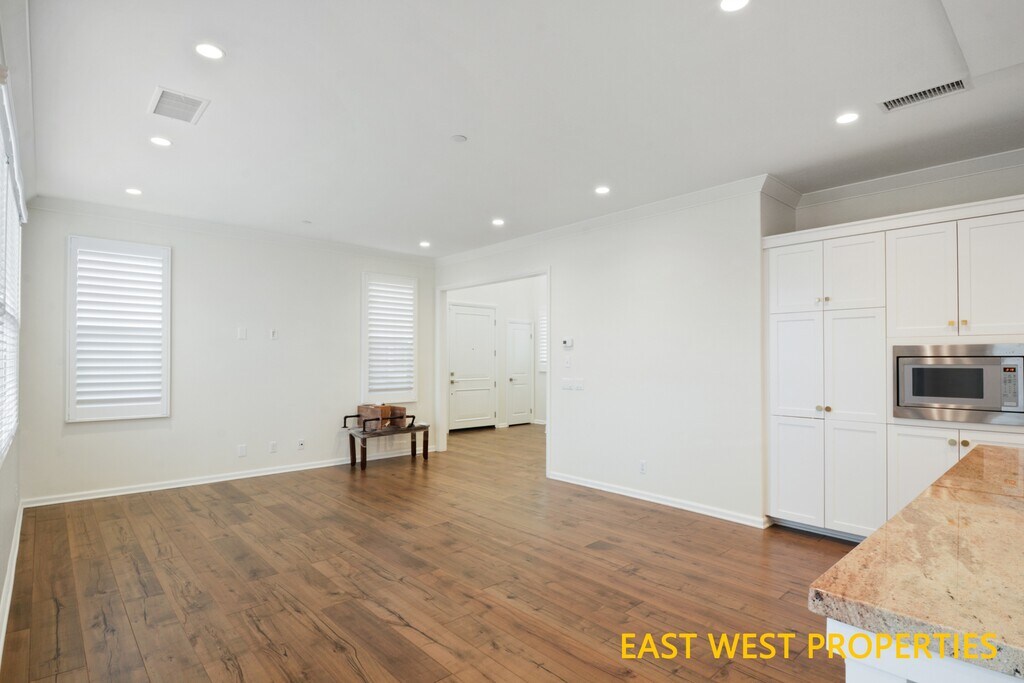 This beautiful home is located in one of the most desirable neighborhoods in Irvine's Eastwood Village, within the Petaluma community. This Irvine Pacific detached home feels like a single-family home features 3 bedrooms and 2.5 bathrooms, offering 1,810 square feet of living space, newer engineer wood flooring on first floor, and a nicely sized backyard with nicely upgraded travertine tile and artificial turf. The gourmet kitchen features well-maintained white cabinetry, stainless steel appliances, quartz countertops and newer backsplash, and a large center island. The kitchen opens to the dining area and a spacious great room, creating an ideal layout for everyday living and entertaining. The primary bedroom suite includes a walk-in closet and a walk-in shower. The home also offers a direct-access 2-car garage with ample storage space. The home is located within the award-winning Irvine Unified School District and is conveniently close to shopping, restaurants, and freeways. Enjoy resort-style living with community amenities including parks, swimming pools, spa, clubhouse, tennis courts, playgrounds, and walking and biking trails.