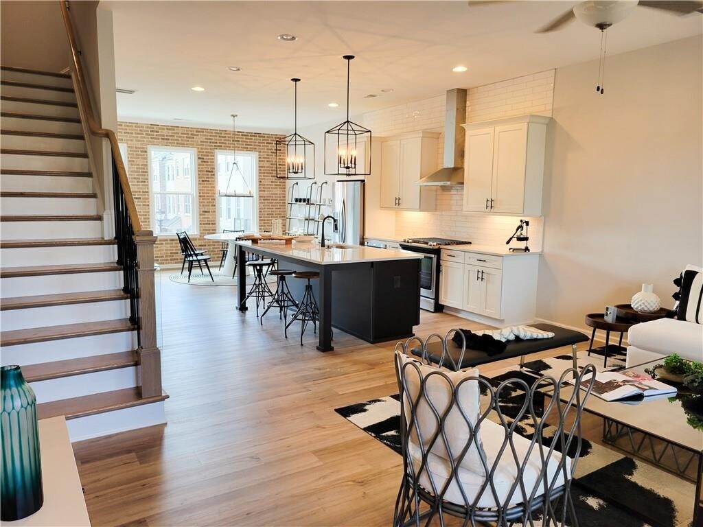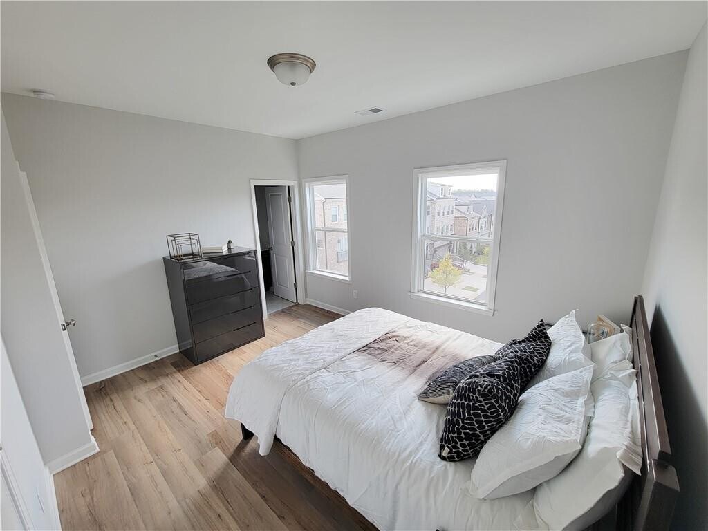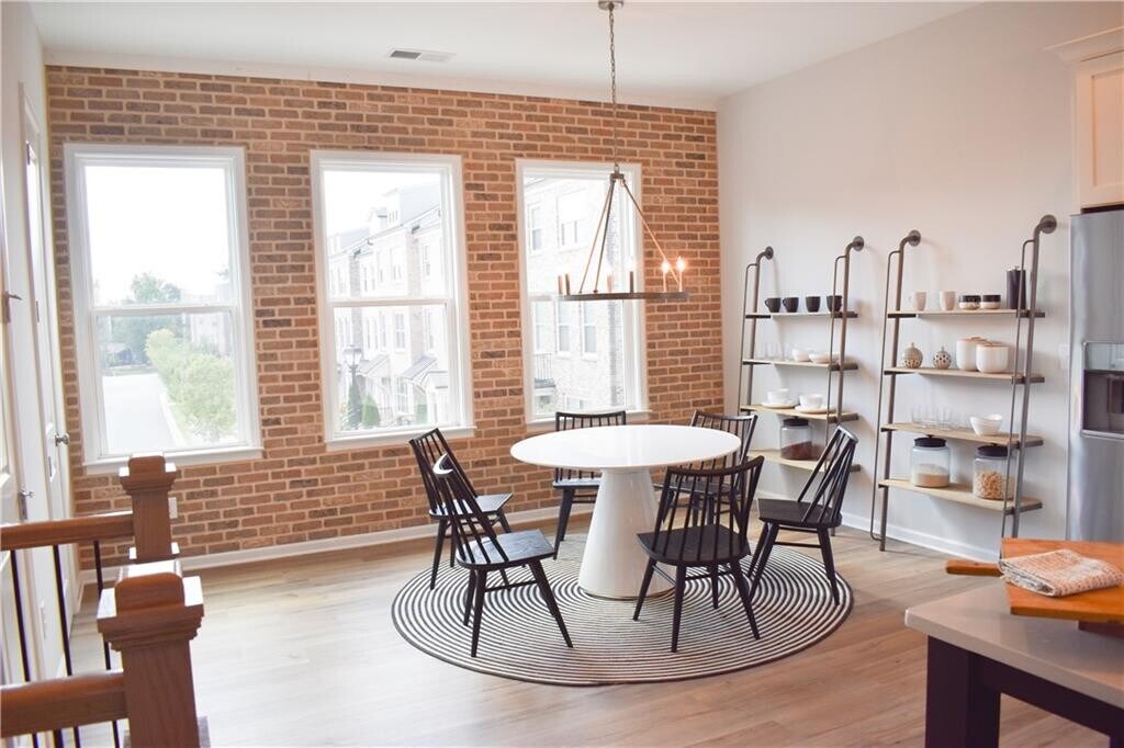 This bright and modern three-story townhome offers a sophisticated layout designed for both privacy and seamless entertaining. The heart of the home is a sun-drenched kitchen featuring sleek stainless steel appliances. Luxury vinyl plank flooring runs throughout every room of all three levels,providing a durable and stylish finish that unifies the entire interior. The intelligent floor plan places three spacious bedrooms and two full bathrooms on the top level to create a quiet residential sanctuary. The lower level provides additional versatility with a private bedroom and its own dedicated bathroom,making it an ideal space for guests or a secluded home office. A convenient powder room on the main level ensures comfort for residents and visitors alike. Outdoor living is a standout feature of this property with two distinct spaces to enjoy. One can relax on the charming front porch or step out onto the expansive second-story porch for elevated views and additional lounge space. With its abundance of natural light and thoughtful vertical design,this home offers a perfect blend of style and functional urban living. This vibrant community offers year-round social events,two resort-style pools,tennis and pickleball courts,a bocce ball court,dog park,scenic ponds,walking trails,expansive green spaces,and a beautiful clubhouse. The HOA covers lawn care,exterior maintenance,trash service,and termite protection,allowing you to truly enjoy a low-maintenance lifestyle. Ideally located within walking distance to Ameris Bank Amphitheatre and just minutes from downtown Alpharetta,Avalon,North Point Mall,and GA-400 MLS ID 7740799