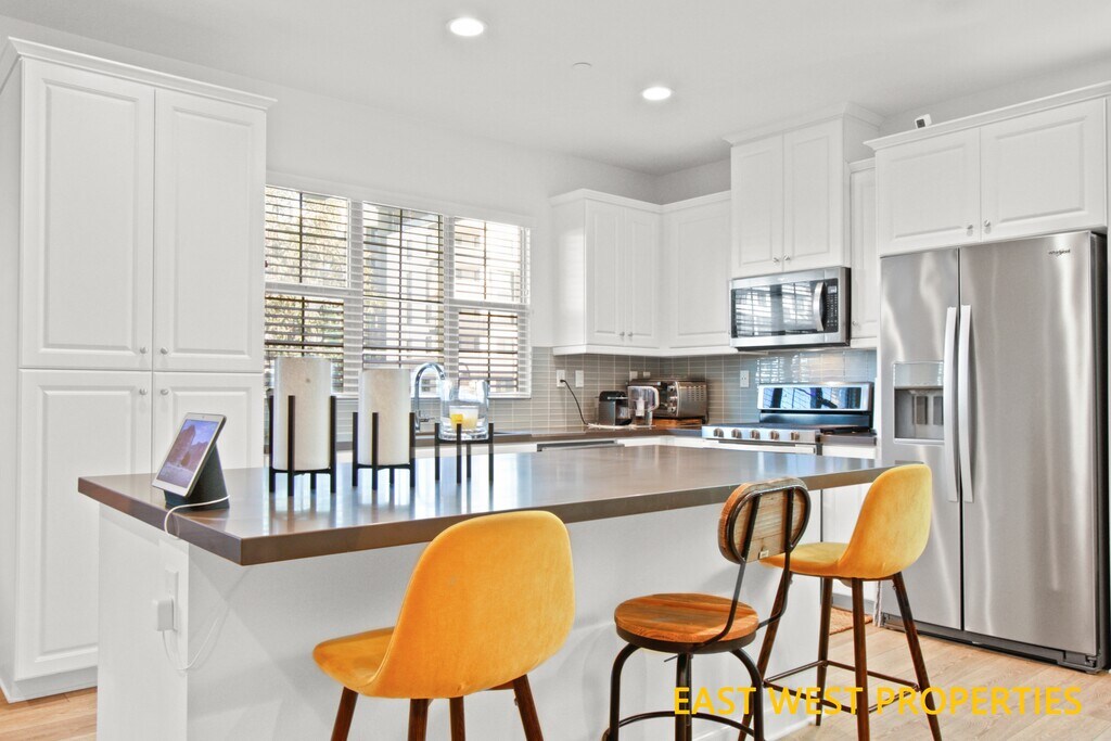 Don't miss this newer stunning 3-level corner townhome in Stanton, built in 2020, with 3 beds 2 full baths and 2 half baths, featuring modern amenities you'll fall in love with, located just steps from Rodeo 39. This home offers a blend of comfort and convenience in a highly desirable gated community within the Garden Grove Unified School District. Equipped with paid solar panels and smart home technology including smart front door lock, lights, garage door opener, and thermostat; not only offering lower energy bill, but a simple, secure, and convenient way to control your home from anywhere. The home also boasts a spacious open floor plan, modern luxury vinyl floors, and large windows that provide great natural lighting, offering a sleek and modern aesthetic. The designer kitchen features quartz countertops, a large kitchen island, and opens to a huge family room with a patio, which is perfect for entertaining or relaxing with family. All three bedrooms are upstairs and are generously sized. This resort-like community features a sparkling pool, a children's playground, and a dog park. It is conveniently located near shopping centers, Little Saigon, churches, Mile Square Park, and several golf courses. Just a short drive to Huntington Beach and less than 30 minutes to Costa Mesa, Irvine, and Long Beach, and with quick access to the 22, 405, and 5 freeways. All appliances and partial furniture are included but open to negotiation. Don't miss the opportunity to make this your new home!
