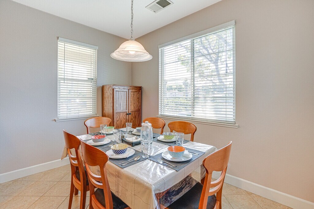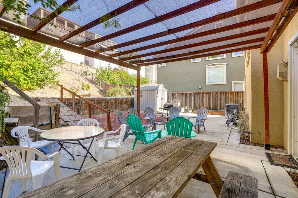 Make the most of your time in the Bay Area and beyond when you book this comfortable home in Bay Point. Located within walking distance of the nearest public transit BART station, this 4-bedroom, 3-bathroom vacation rental gives you easy access to all of San Francisco's unique attractions. After breakfast, head over the bridge to stroll through Fisherman's Wharf, visit museums, or take in the sights and sounds of Chinatown. In the evening, you'll be welcomed home by rolling green hills. This 2-story home requires stairs to access and features one bedroom and one full bathroom on the first floor. This spacious 2,100 sq ft home offers valley views and includes a private yard with a covered patio and outdoor dining tables. Inside, you'll find smart TVs, a fireplace, a group-friendly dining table, and a desk with a monitor. The kitchen is fully equipped with cooking basics, a drip coffee maker, dishwasher, stove, oven, refrigerator, microwave, toaster, kettle, ice maker, and dishware and flatware. Parking is available in the driveway for two vehicles, but there is no garage access. Located within walking distance to the BART Station, this home provides easy access to San Francisco's attractions. Explore Fisherman's Wharf, museums, and Chinatown, all just a short trip over the bridge. Enjoy the convenience of public transportation to experience the best of the Bay Area. This property features seven external security cameras that are outward facing and do not look into any interior spaces. Quiet hours are from 8:00 PM to 8:00 AM. No smoking, drugs, pets, events, parties, or large gatherings are allowed. The mailbox is not available for guests. Guests must be at least 25 years old to book. Additional fees and taxes may apply. A photo ID may be required upon check-in. Guests will have access to the entire property via self check-in. Includes a desk with a monitor, making it remote work-friendly. Free WiFi is available throughout the home, ensuring you stay connected during your stay. [SI]