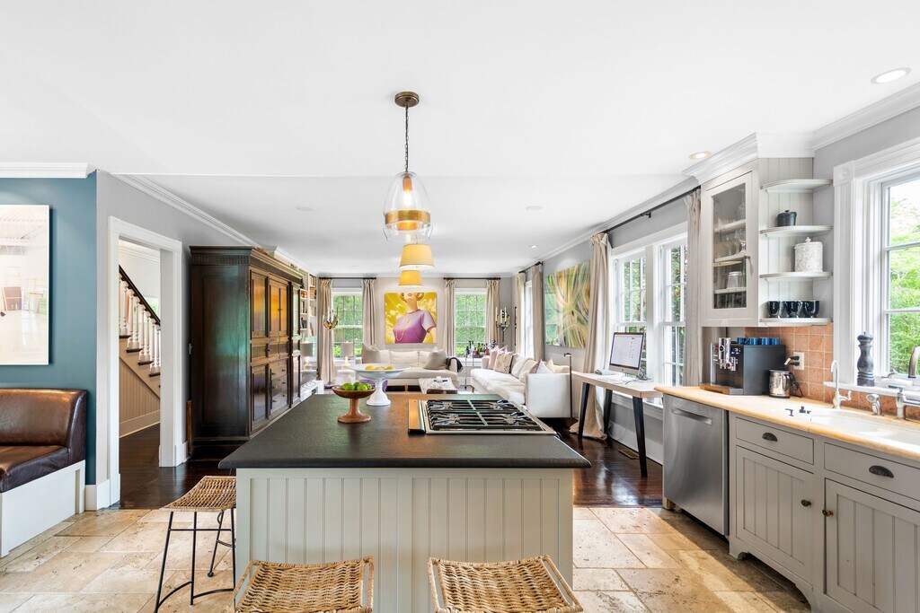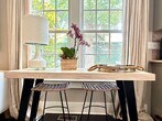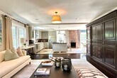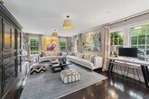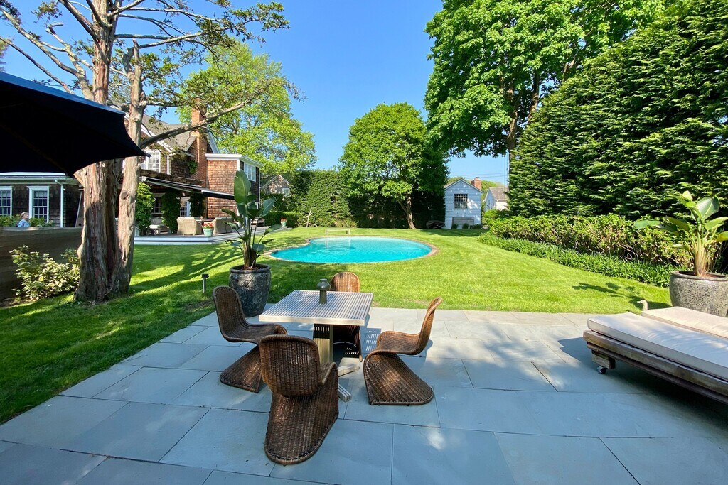 Enjoy the ease of being only moments away to Southampton Village and Gin Lane Beaches from this charming and chic compound on one of the main streets in Southampton Village. A private and expansive backyard between the two homes provides exquisite outdoor entertainment and al fresco dining along with a heated gunite pool to enjoy the long summer days. A total of 8 bedrooms between the two homes, one can experience either a multi-family situation or simply enjoy the opportunity to have guests in another home that is joined by the gardens. A secluded, home office is available in the loft space above the garage for those who need the space to work in peace and quiet. The main house has 2 guest bedrooms on the main floor and 2 additional guest bedrooms on second floor. On this same floor, a fabulous outdoor deck is set up for lounging, or morning coffee/ afternoon cocktails which overlooks the lush back yard. The 3rd floor is set up as music/gym den (which could be a private office as well) and the newly renovated designers' cottage has 4 bedrooms, (incl staff bedroom on main floor),2 bathrooms, outdoor fireplace, and 2nd chef's kitchen. Garage not included. Dogs are allowed case by case. Rental Terms: July: $100,000