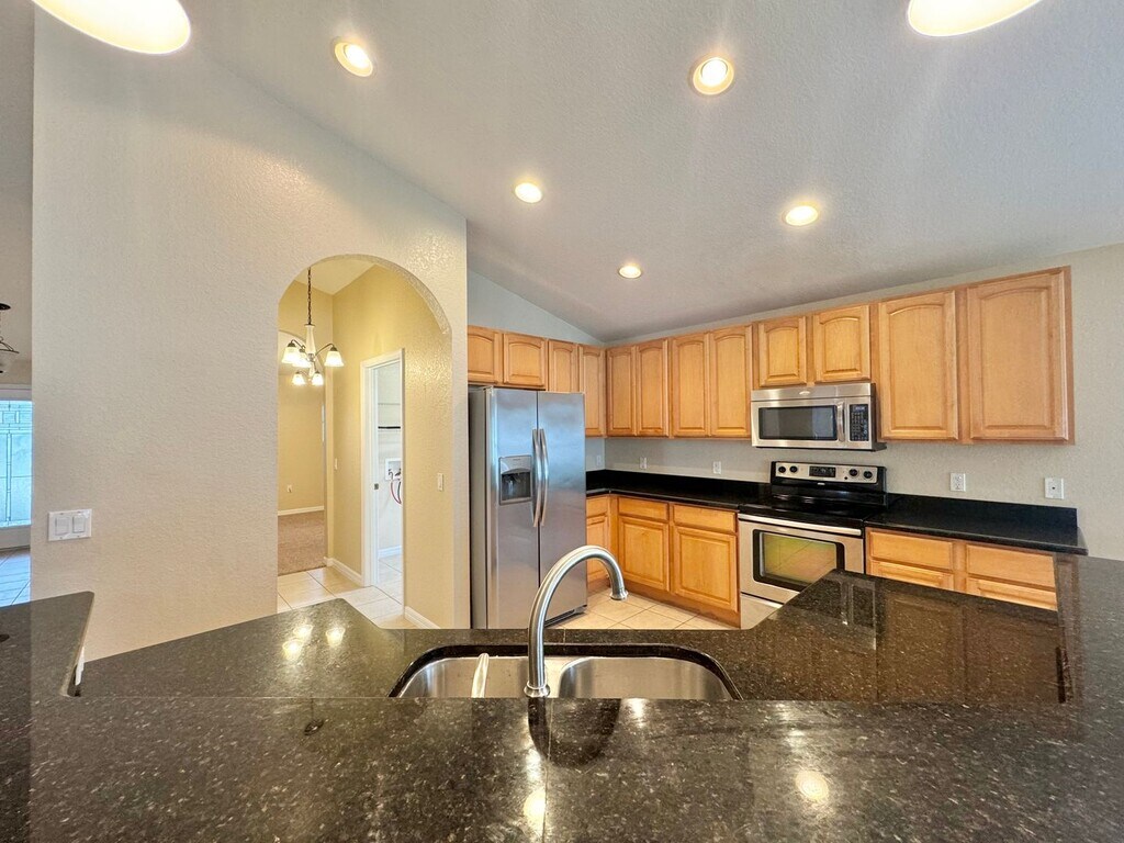Welcome to this clean and large 3 bedroom 2 bath Cassidy Home in the gated community of Mandolin. Kitchen features granite counter tops, stainless steel appliances, breakfast bar and eating nook area. Work station with built in desk off kitchen and inside utility room. Formal dining room with plant shelves. Living room with cathedral/vaulted ceilings, plant shelves and sliding glass doors to the covered patio. Large master suite, master bathroom with walk-in closet, dual sinks, garden tub, and separate tile shower. Great location, not far from shopping centers, Walmart or Publix.