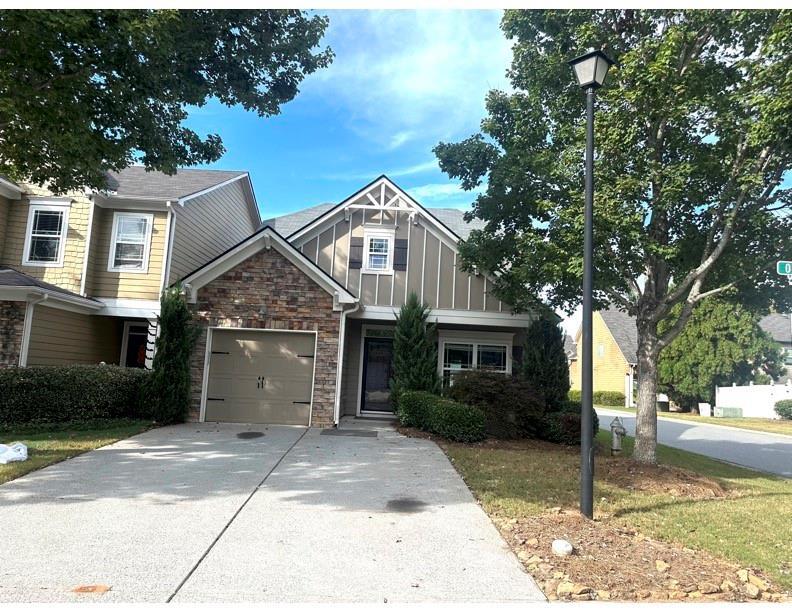 Charming bungalow style craftsman home located on a corner lot in Highland Pointe at Oakmont. Spacious living room with soaring ceilings and natural light throughout. Separate dining room.Owner's suite on main features tray ceiling and dual access walk-in closet,en suite bathroom with soaking tub,separate shower,double sinks and another large walk-in closet. Trash collection is included in the rent. Direct access to GA400 and conveniently located close to shopping and dining in Dawsonville including the GA400 outlet mall. 20 mins to Dahlonega.
