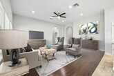 Welcome to this beautifully updated single-story home in the highly sought-after Star Ranch Golf Club community—where style, comfort, and convenience come together. With 2,239 sq ft of thoughtfully designed space, this home features an open floorplan perfect for both gathering and everyday living. The heart of the home is the kitchen, boasting granite countertops, a spacious island, crisp white cabinetry, and stainless steel appliances—all accented by modern light fixtures that bring warmth and charm. You’ll love the wood floors flowing through the main living areas, tile in the wet spaces, and plush new carpet in the bedrooms. The versatile 4th bedroom makes the perfect home office, while the oversized primary suite offers a peaceful retreat with a spa-like ensuite—complete with a soaking tub, standing shower, and a large walk-in closet. Bathrooms are finished with new, modern lighted mirrors for an elevated touch. Outside, a huge lot at the end of the street offers an oversized backyard ready for play, gardening, or simply relaxing. The 2-car garage features epoxy flooring and recessed lighting, giving even the most practical space a polished finish. All this, in a prime location—just 2 minutes to HEB and quick access to 130 Toll for an easy commute to downtown Austin, the airport, major tech companies, and the new Samsung plant in Taylor. Shopping and dining at Stonehill are just 10 minutes away. Come see for yourself why this Star Ranch home is the perfect mix of modern updates, timeless style, and everyday convenience.