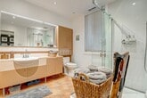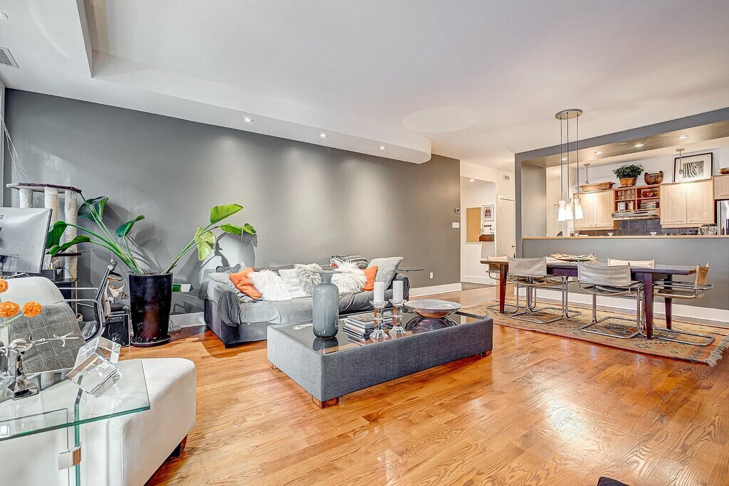 Furnished 1,014 sq. ft. condo for rent in the heart of downtown Montreal, located on a quiet one-way street. Just steps from the metro, train station, and major highways, it offers quick access to everything downtown has to offer. The unit includes a parking space, which is sheltered year-round, along with a large private terrace.