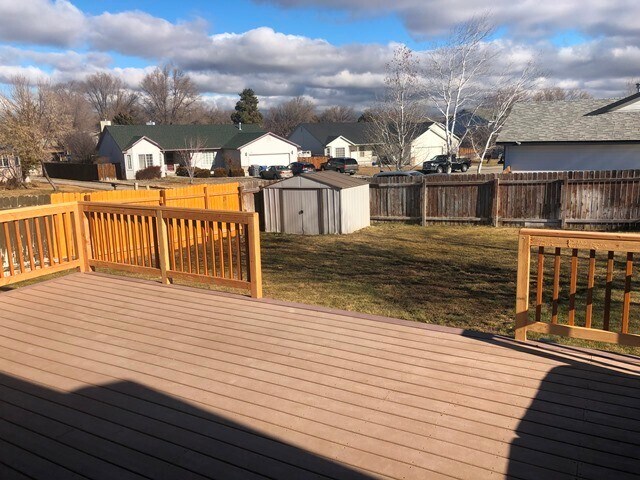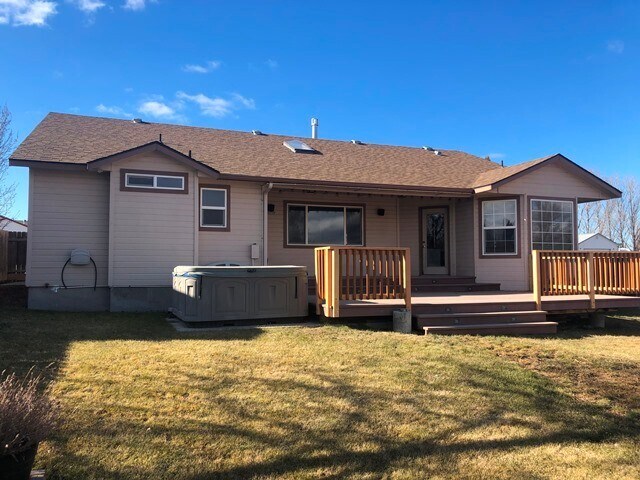 No animals. 4BD / 2 BA home sits on a corner lot with a large back yard. Family room with a gas fireplace and skylights. Stainless appliances. Master bedroom has two walk-in closets and the bathroom has a tiled shower. Master bedroom has door leading to outside deck. Backyard has a shed and garden area. Hot tub not included.