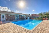 Updated CANAL FRONT POOL home!!! This home offers 4 bedrooms,2 baths with a bright open living-dining-kitchen combination. Large pool with pavers all around the pool on almost 75ft of canal front. Sought-after terrazzo flooring thru out the home. Part of the garage has been converted to large Master Suite. Garage does still offer some storage. Storage shed stays with property. Pool and Yard Maintenance included.