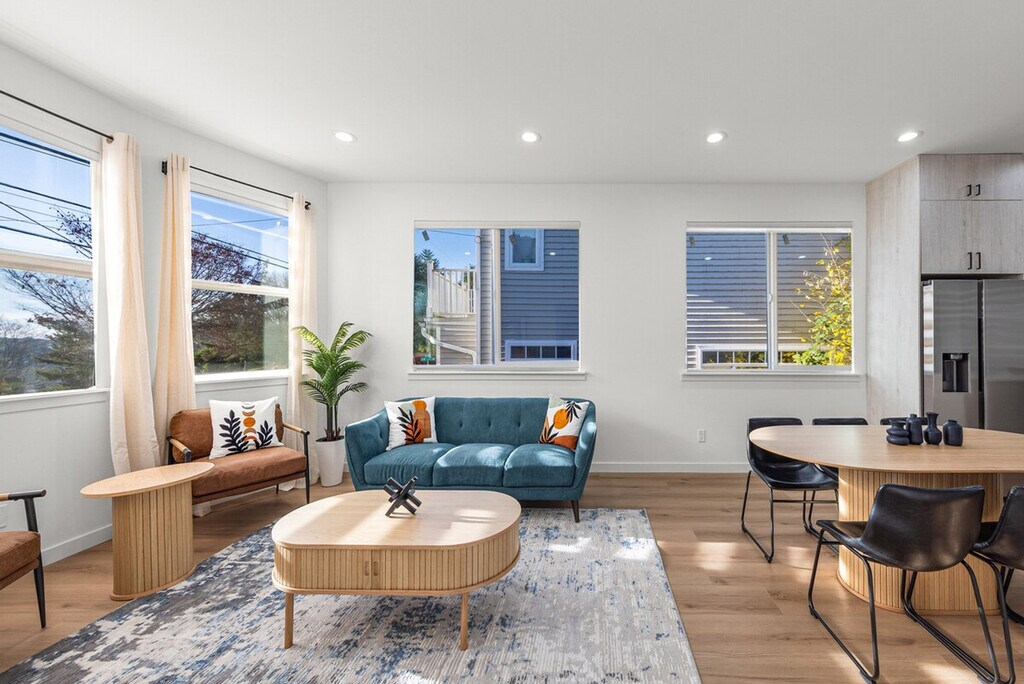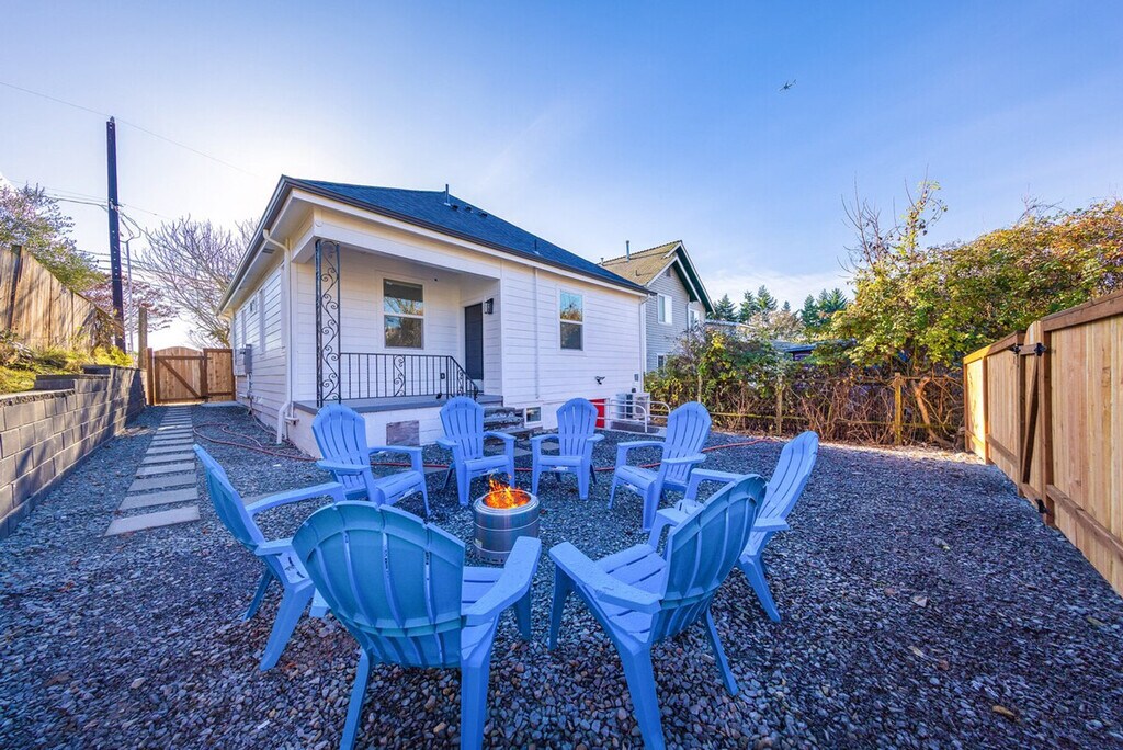 Welcome to your modern Seattle retreat, perfectly situated right across from a neighborhood park. Feel at home in this home that combines modern comfort, outdoor fun, and unbeatable convenience. Ideal for families, groups, or business travelers. This home offers a fully equipped kitchen for easy meal prep and a modern, open-concept living area with cozy seating and natural light. Enjoy a fully fenced backyard for privacy and safe outdoor time, complete with a fire pit ideal for s’mores and relaxing evenings. Mini-split AC keeps you cool during warm Seattle days, and high-speed internet is available for streaming and working. Dedicated parking is available for 3 cars, and there is plenty of free street parking. This is a pet-friendly home, so bring your furry friends along. With excellent location and quick access to all major Seattle highways, this home offers an easy approach to anywhere in the city. Relax on the front porch and enjoy the great views. This is a non-smoking property. Any evidence of smoking will result in a $550 fine. Includes a dedicated workspace perfect for remote work. Registration Number: STR-OPLI-25-006454 [SI]