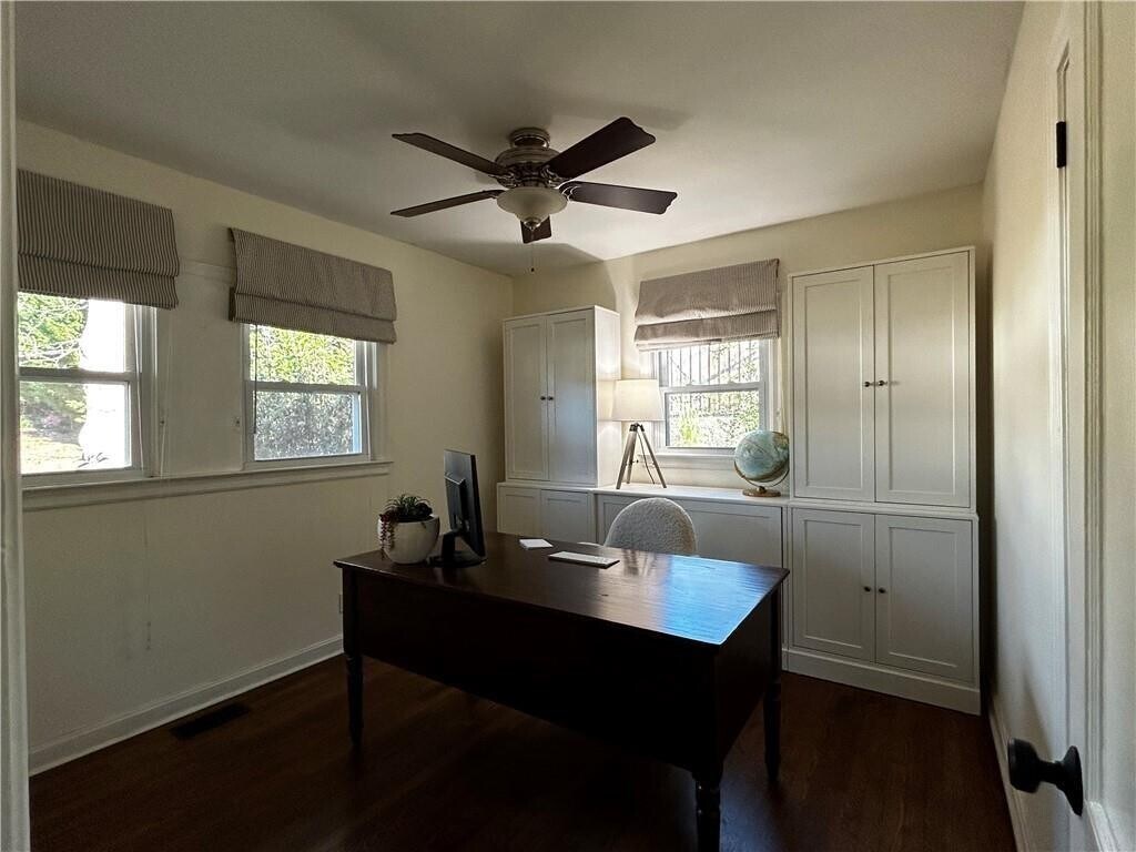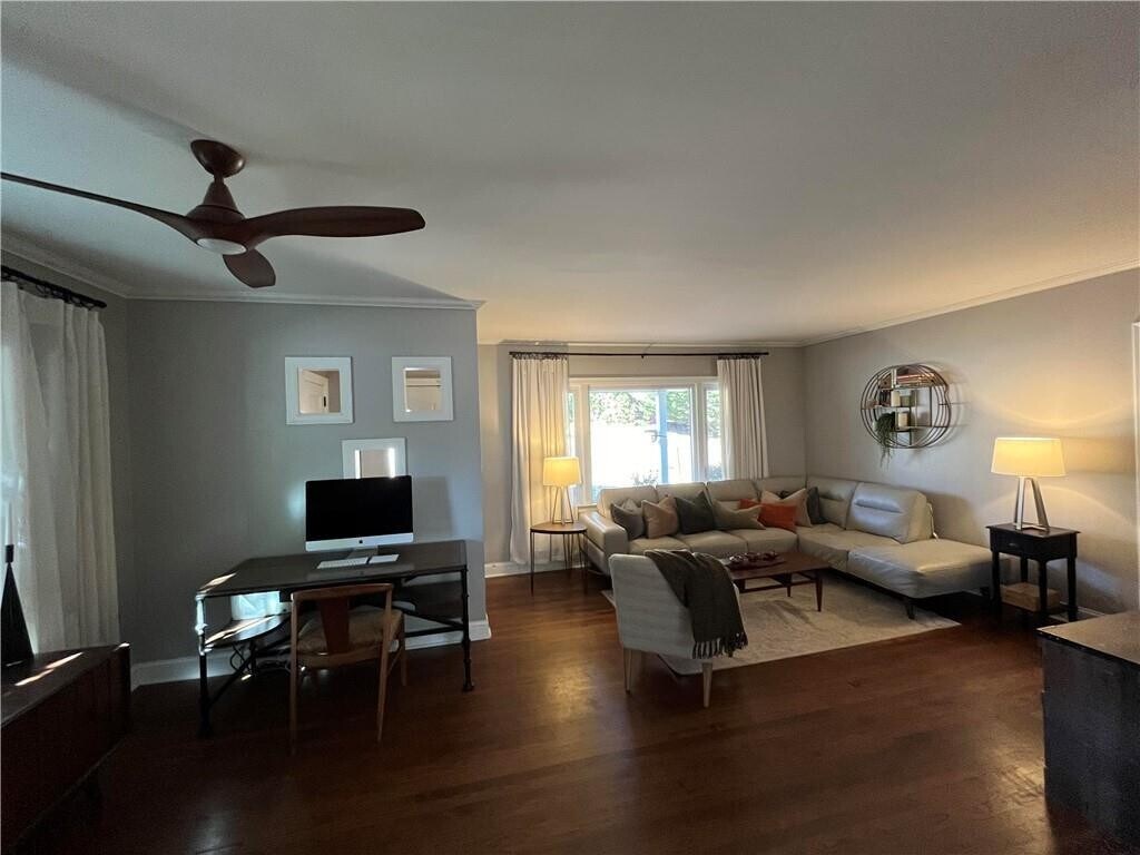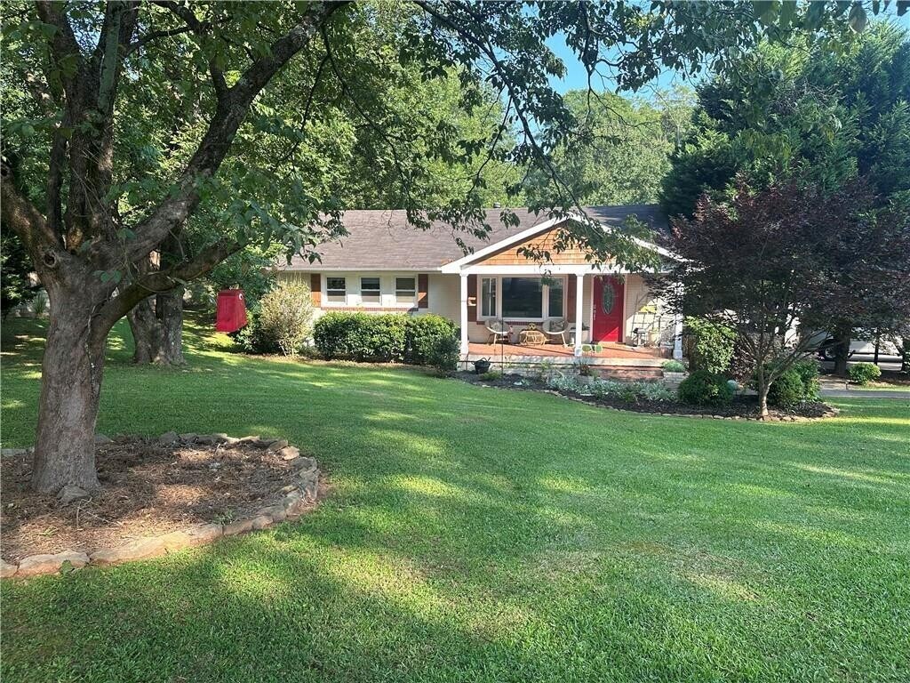 -Updated well cared for Brick Ranch Home in Smyrna's sought-after Forest Hills! Spacious and welcoming covered front porch. Hardwood floors,crown molding,and ceiling fans throughout. Family room has a great corner nook that could be used for additional seating or an office space. Updated modern kitchen features white cabinets,stone counters and backsplash,and stainless steel appliances. The adjacent dining area is roomy and has built-in bookshelves. The sunroom is a great space to relax while looking out over the fenced backyard with patio after a long day at Work! The quiet level cul-de-sac / corner lot also has a carport and two car garage or workshop. Forest Hills is located close to Smyrna’s greatest attractions,such as Smyrna Market Village,Silver Comet Trail,Truist Park and The Battery (home of the Atlanta Braves),Brinkley Park,Taylor-Brawner Park (home of Food Truck Tuesdays),plus easy access to the interstate,shopping,and restaurants. No smoking allowed. Pet Friendly Home.