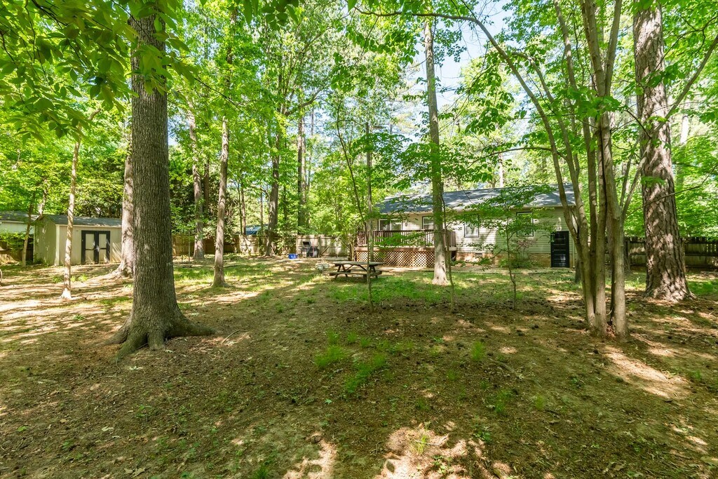Discover a comfortable 3-bedroom, 2-bath ranch-style home in Durham, NC. This single-level layout features built-in bookshelves for display, office space and storage, a private deck for outdoor relaxation, and a large fenced-in yard ideal for outdoor activities. Driveway parking provides convenient on-site access. Well-suited for those seeking a practical, low-maintenance residence with useful indoor storage and private outdoor space. A short drive to Southpoint, I-40, and NC 147. You can also take the greenway the whole way to downtown Durham! This house has a lot to offer! 650+ credit required. Sorry, NO pets allowed. 24 hours notice required for showings. Appointments by email only. Offered by Acorn + Oak Property Management. For more info or to schedule a showing, please contact Brett and Johnny at properties@acorn-