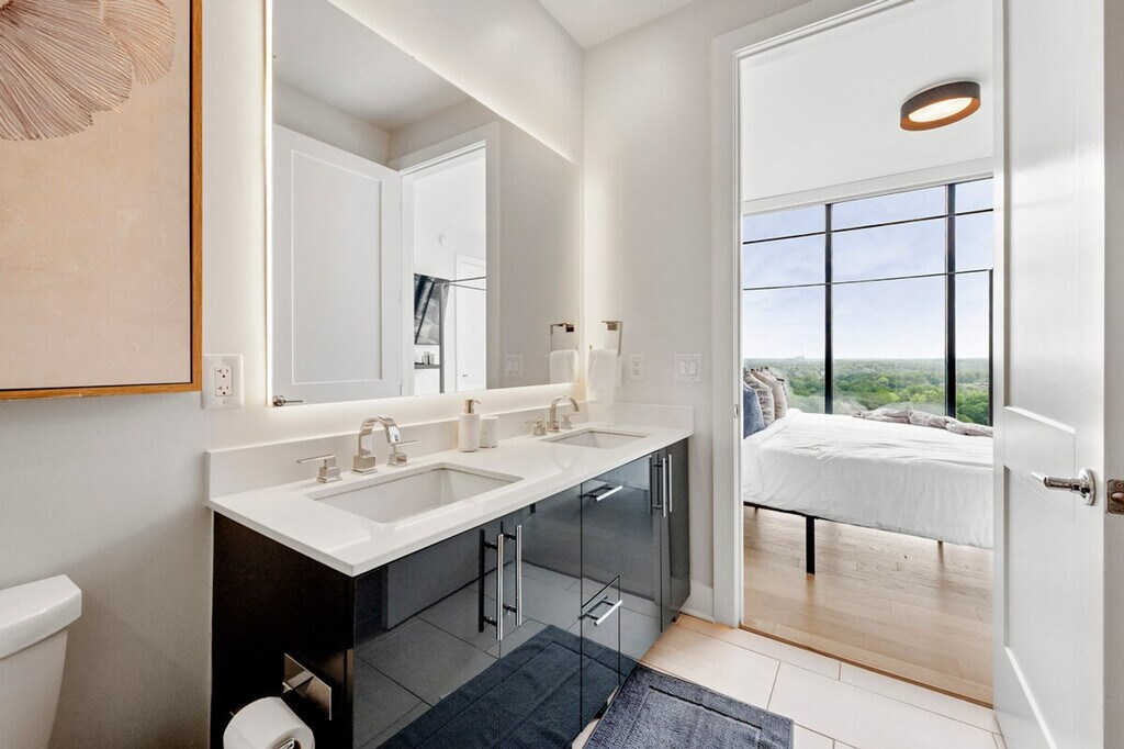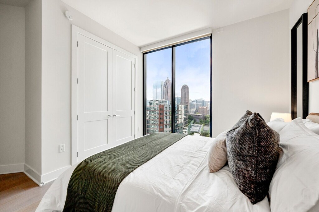 Experience luxury and feel at home in this pristine 2-bedroom penthouse in the heart of Midtown Atlanta, offering stunning skyline views. This apartment features sleek design, floor-to-ceiling windows, a fully equipped kitchen, and upscale amenities for a stylish stay. Walk to top dining, shops, and attractions, making it perfect for business or leisure. The primary guest must be 25 years or older to book and provide a valid government-issued ID prior to check-in for verification. A $500 non-refundable fee will be charged for any smoking-related incidents. [SI]