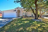 Well maintained 3/2/2 on corner lot that backs to open land. Spacious formal dining, 2 nice secondary bedrooms & full bath at front. Large family room with fireplace opens to kitchen with lots of storage. Breakfast room opens to covered patio & privacy fenced back yard. Primary suite at back features garden tub, separate shower, double vanity & large walk in closet. Two inch blinds on windows, ceiling fans in family room and all three bedrooms. Vinyl plank and tile flooring throughout. No carpet