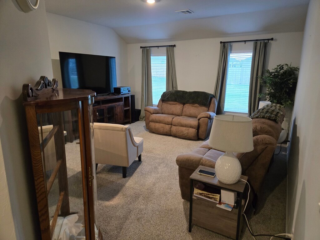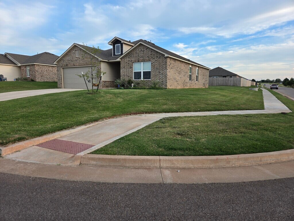 Welcome home to this charming 3-bedroom, 2-bath, 1,355 sq. ft. residence perfectly situated on a corner .28-acre lot in a peaceful, established neighborhood. Enjoy easy access to I-40 and a quick 25-minute commute to Tinker Air Force Base. This well-kept home offers plenty of natural light, spacious living areas, and a comfortable layout ideal for families or professionals. The riding lawn mower stays with the home for convenient yard care, and you’ll love the location—right next to a beautiful pond and park, perfect for relaxing walks or weekend picnics. Washer and dryer not included. $500 Pet fee.